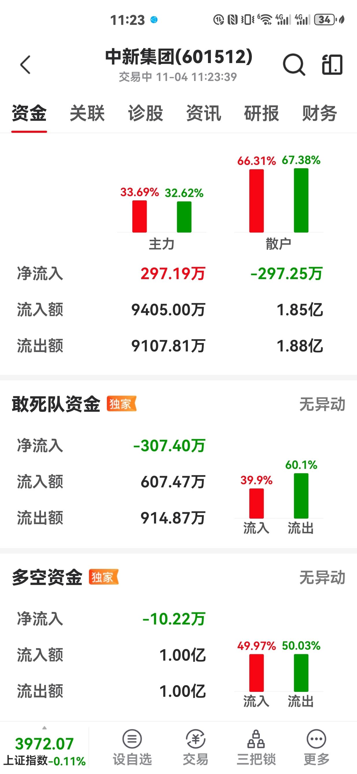 $中新集团(SH601512)$ 庄家主力没怎么出货,全是小散散卖
