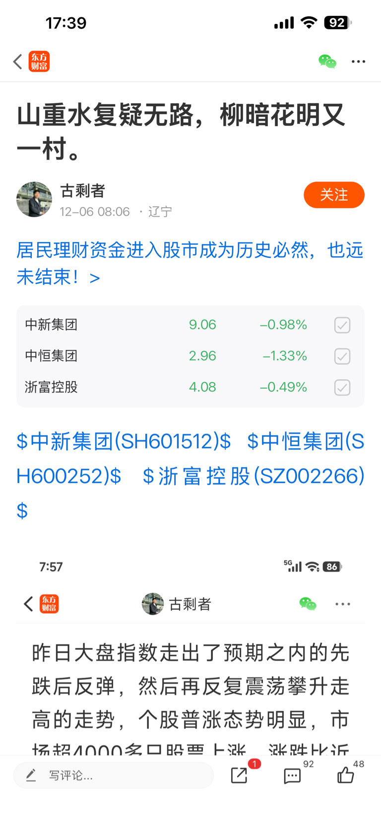 $中新集团(SH601512)$ 大A我谁都不服,我就服古剩者,大盘与板块今天都暴涨,兄弟们个个吃肉,可他选的3只股票全绿,真是神人呀!你说谁有这本事选出来