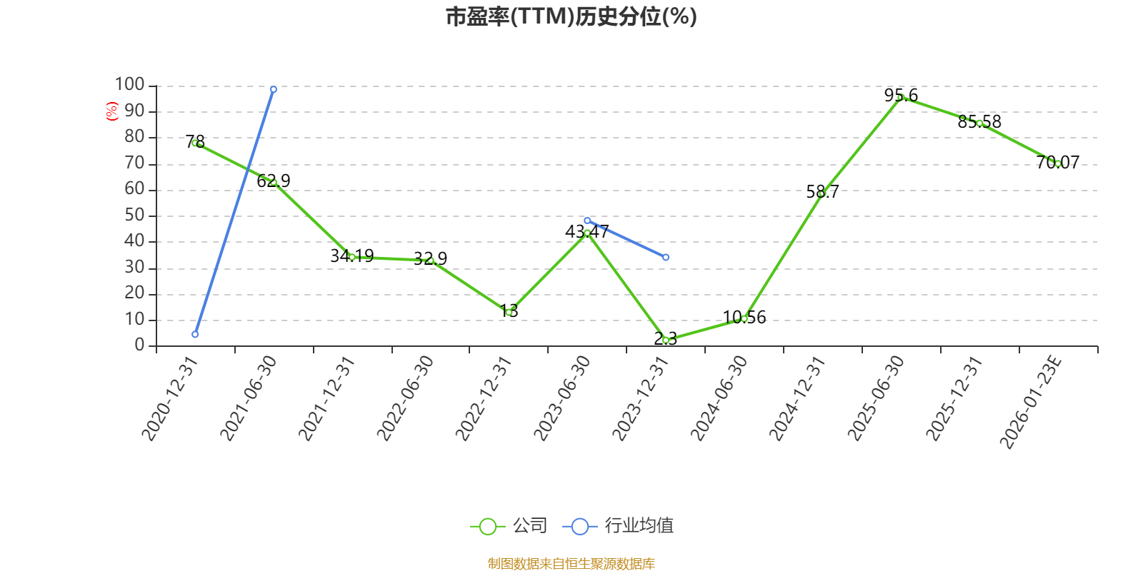 市盈率、市净率为负时,不显示当期分位数,会导致折线图中断。