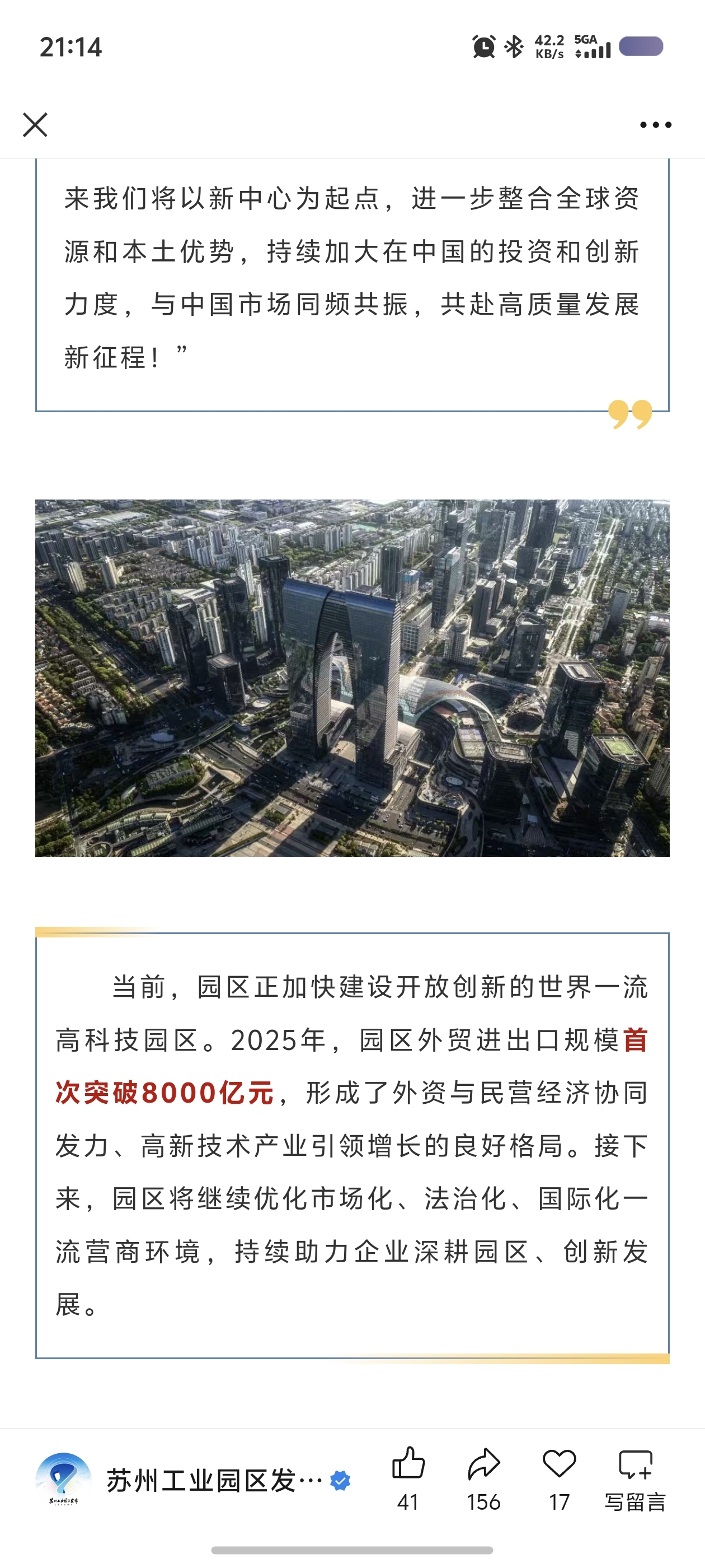 $中新集团(SH601512)$ 苏州工业园区今日份利好