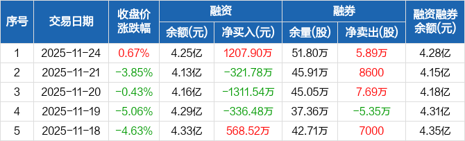 衢州东峰:融资净买入1207.9万元,融资余额4.25亿元(11-24)