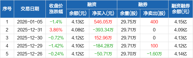 衢州东峰:融资净买入546.05万元,融资余额4.13亿元(01-05)
