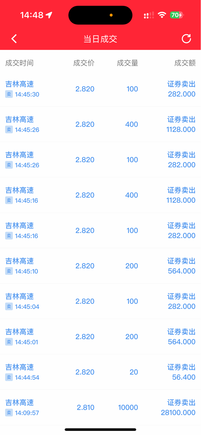 $吉林高速(SH601518)$ 认错,今天把2万股2.81,2.82跑掉了,还剩100股留守,2.75开始吃货,基本已经探明2.75左右才是底部区域