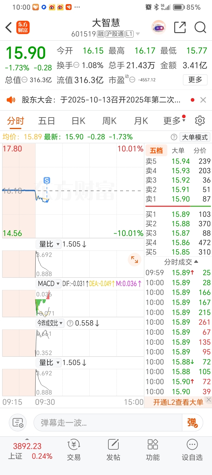 $大智慧(SH601519)$ 你可以上了,熬不住