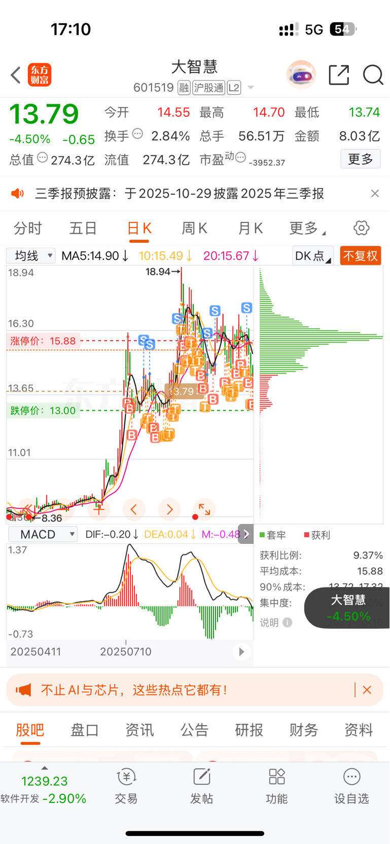 $大智慧(SH601519)$ 全是套牢 获利出的差不多了 这票短期废了