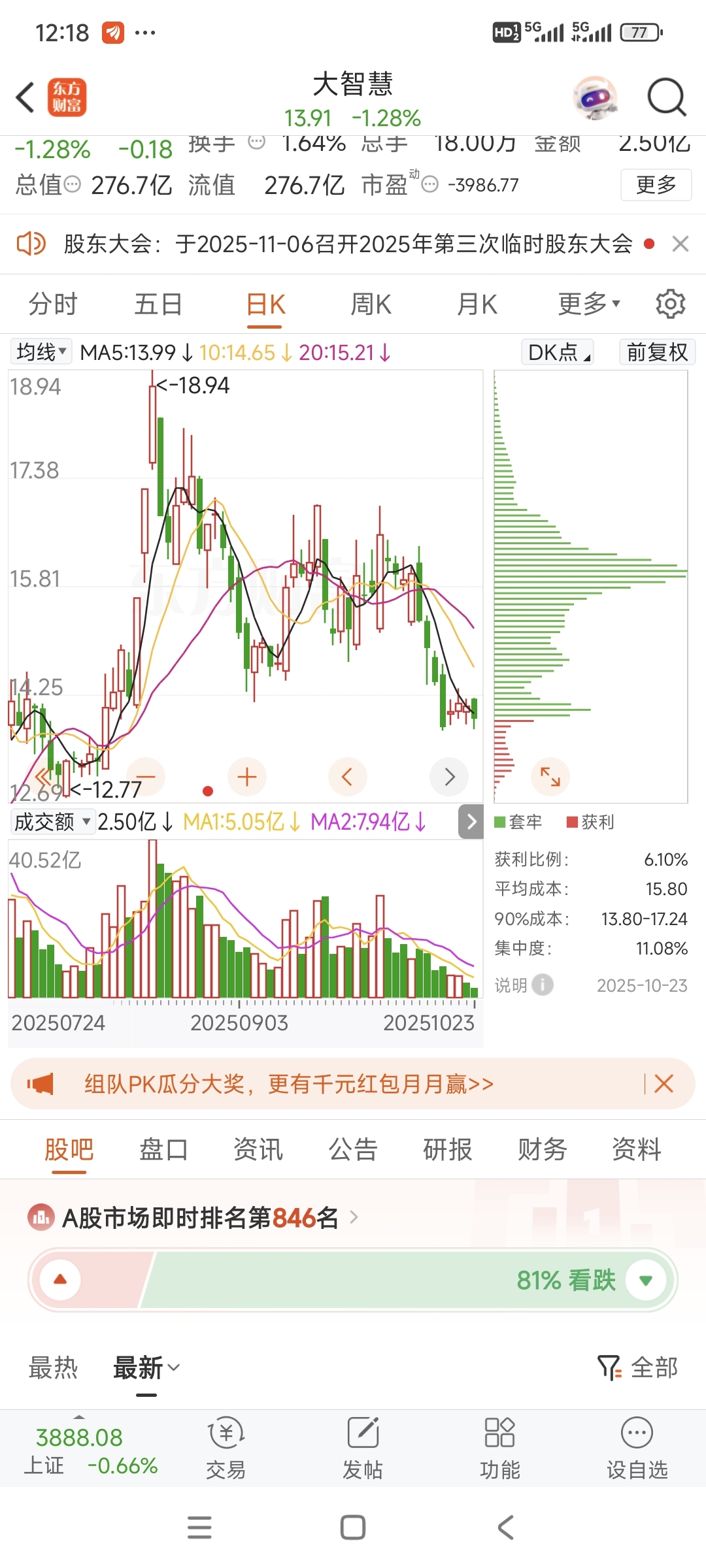 $大智慧(SH601519)$ 这个图解释一下吧,意思全是不计成本的在卖,没的主力了