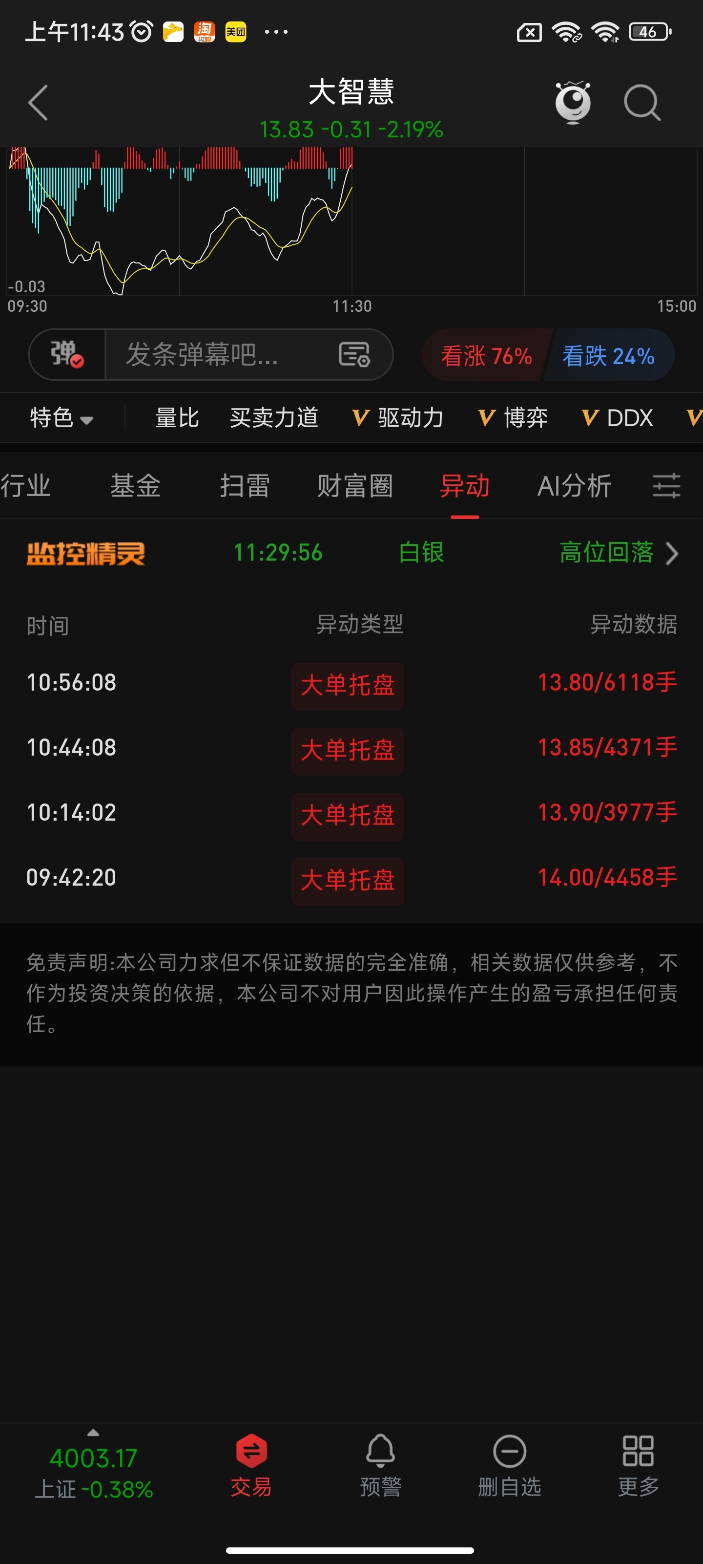 $大智慧(SH601519)$ 下面全是大单托盘