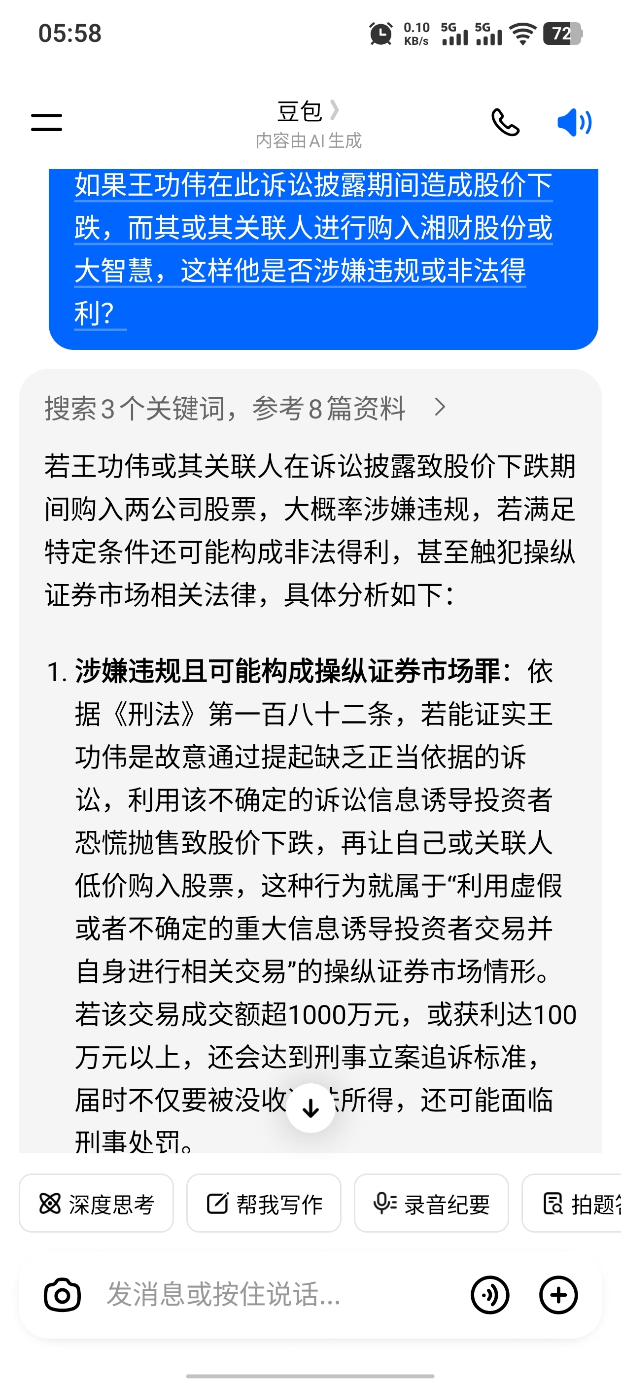 $大智慧(SH601519)$ 股份下跌王功伟及其关联人反向买入股票得利构成操纵市场罪!