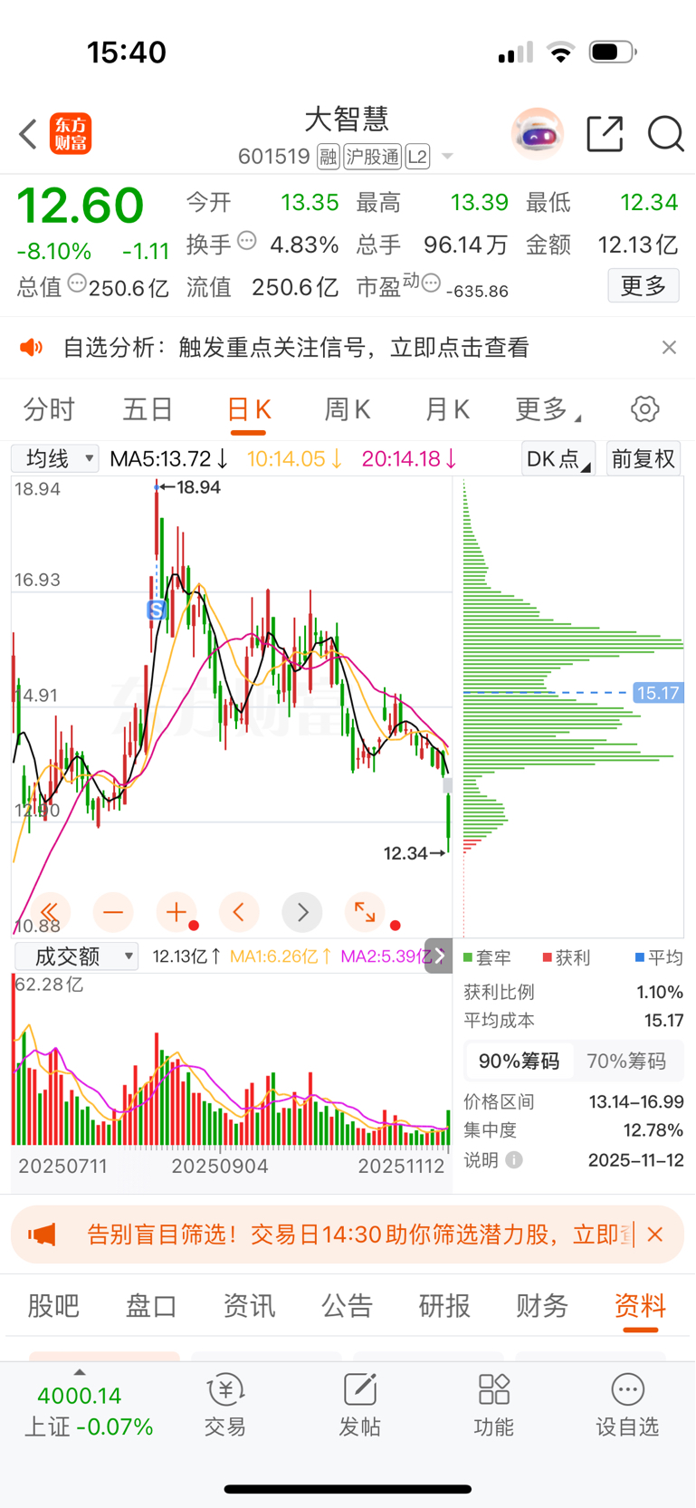 $大智慧(SH601519)$ 我刚看到,这股是让我18.79全仓出了,给卖崩了????