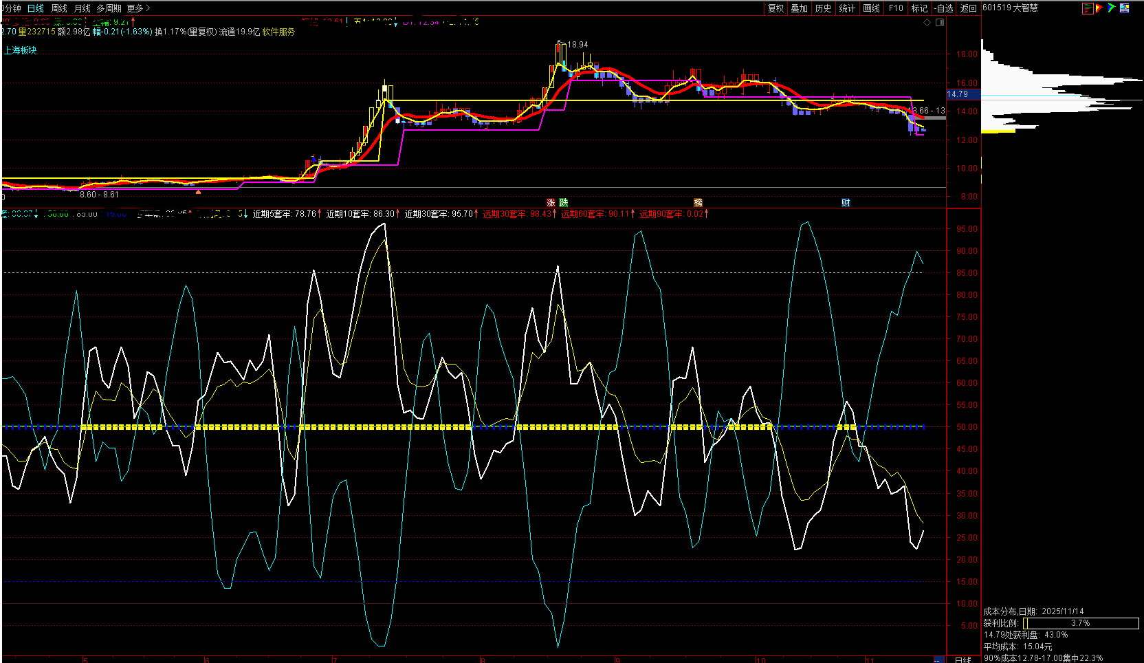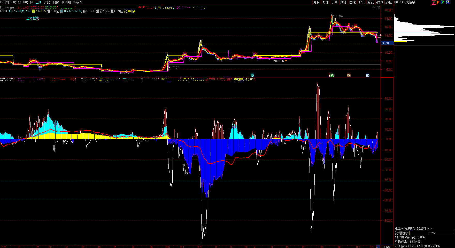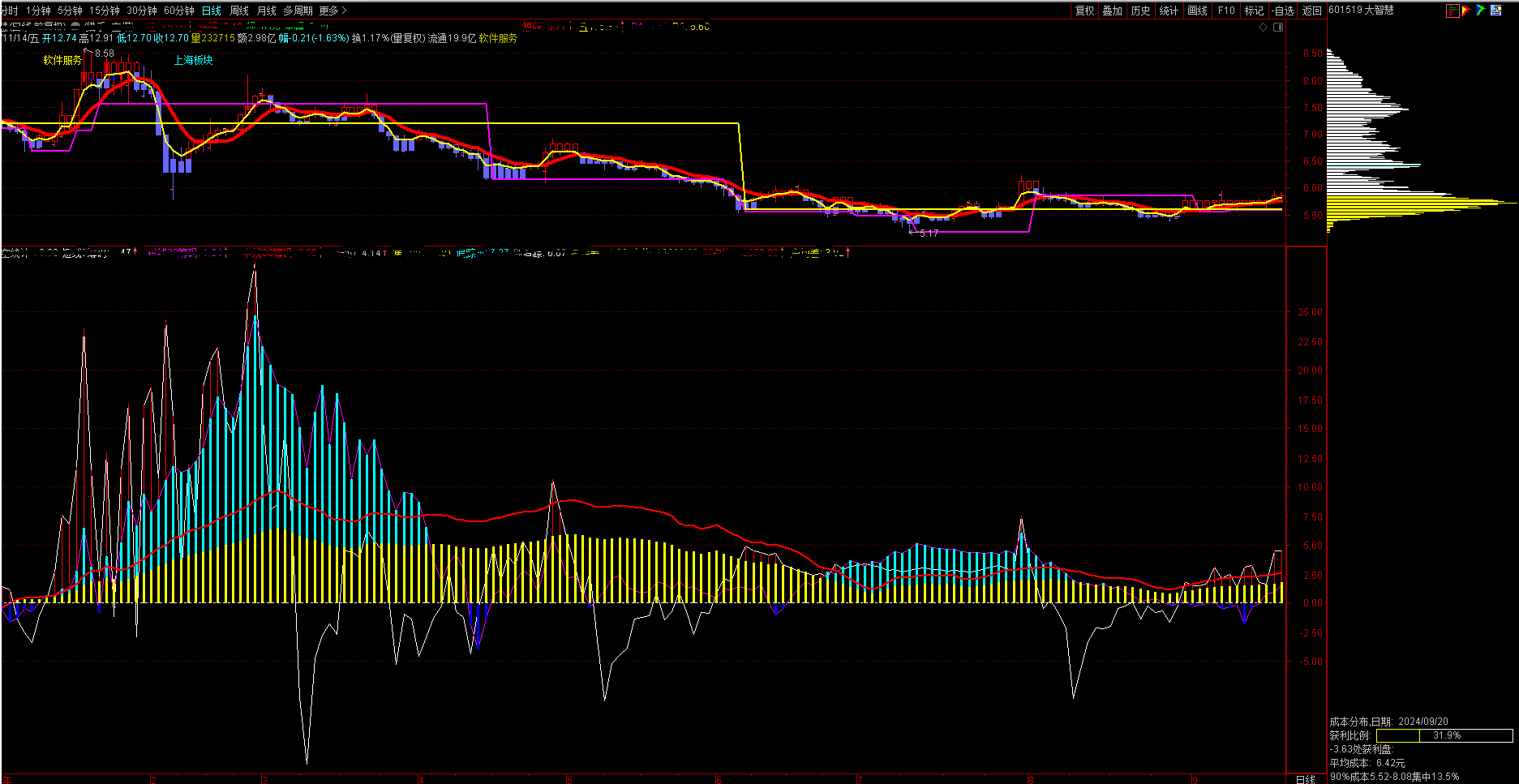 大智慧 机构成本6.50 公司估值7.00 多空点位12.69 空头防守位13.35