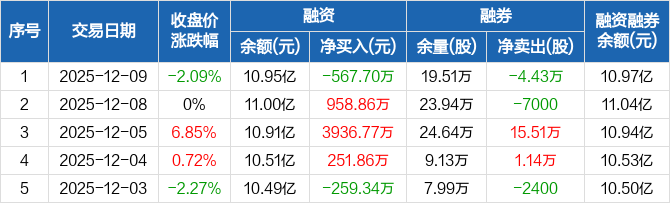 大智慧:融资净偿还567.7万元,融资余额10.95亿元(12-09)