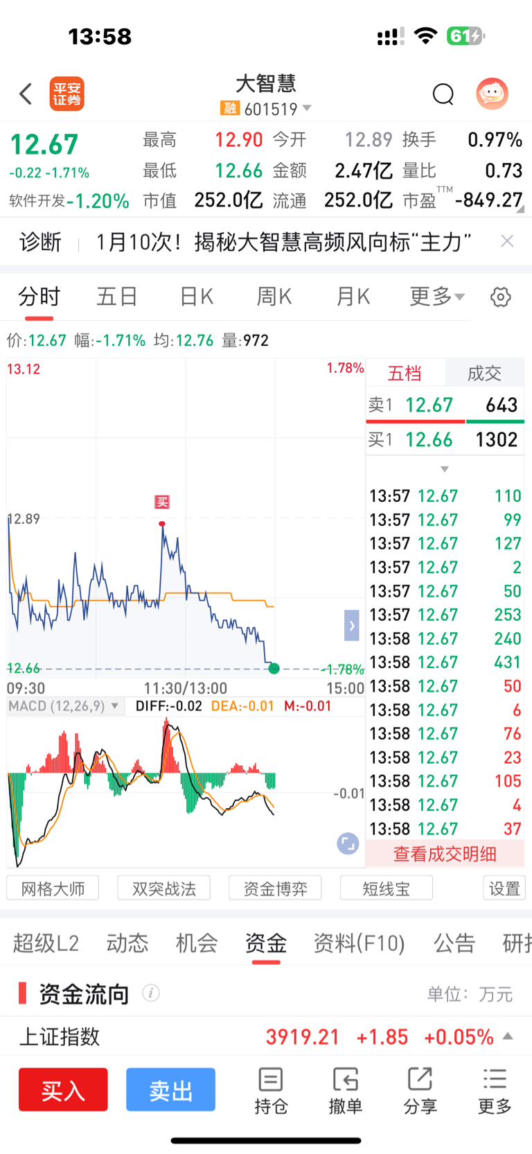 $大智慧(SH601519)$ 我对不起大家,买跌下来了