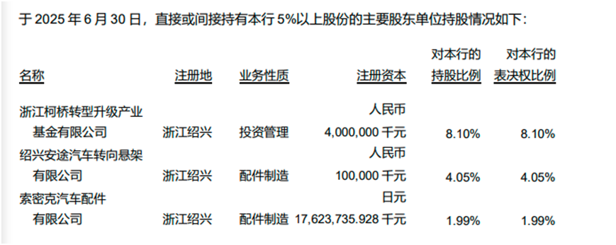 根据瑞丰银行半年报披露的信息,该行直接或间接持有5%以上股份的主要股东将仅剩浙江柯桥转型升级产业基金有限公司,股权穿透背后为浙江省绍兴市柯桥区财政局旗下。