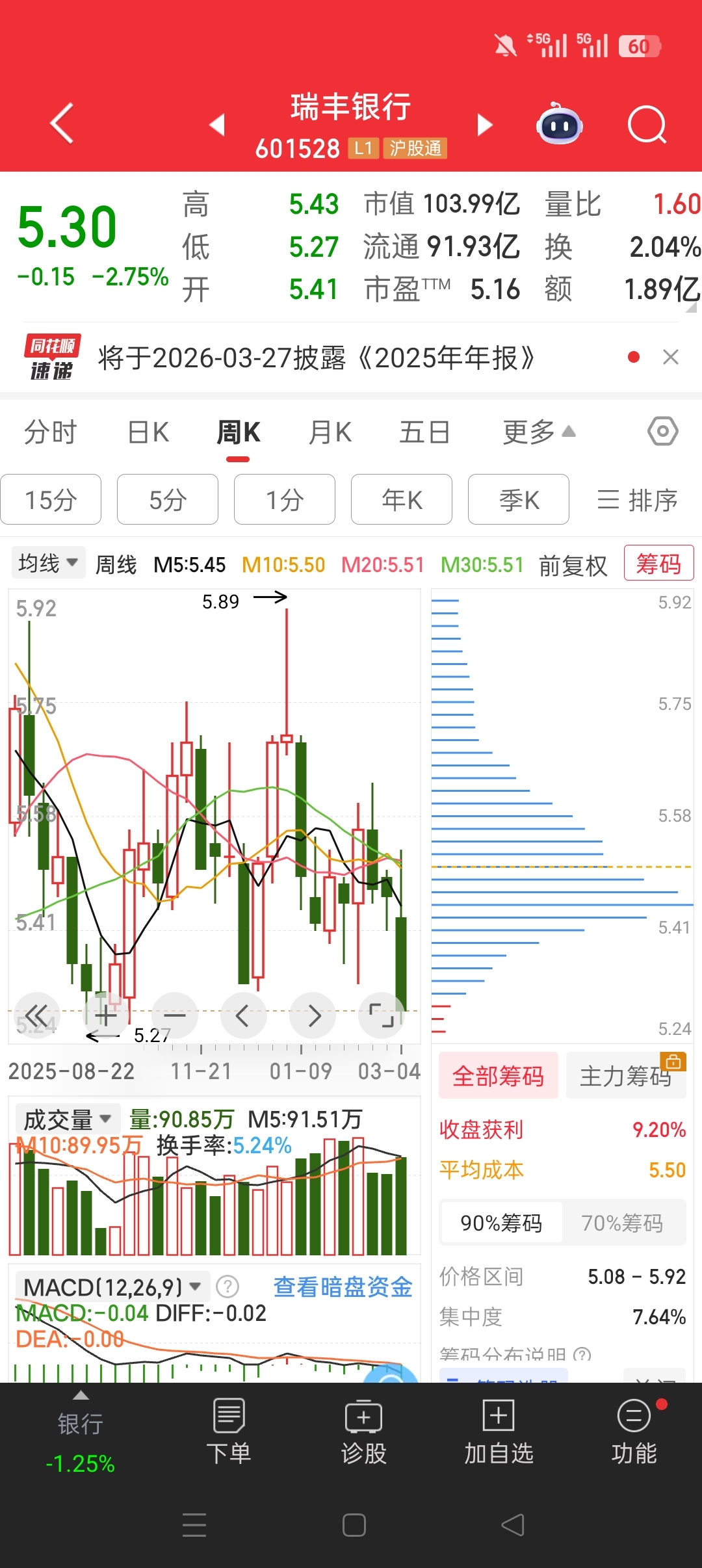 $瑞丰银行(SH601528)$ 获利盘一点都没有