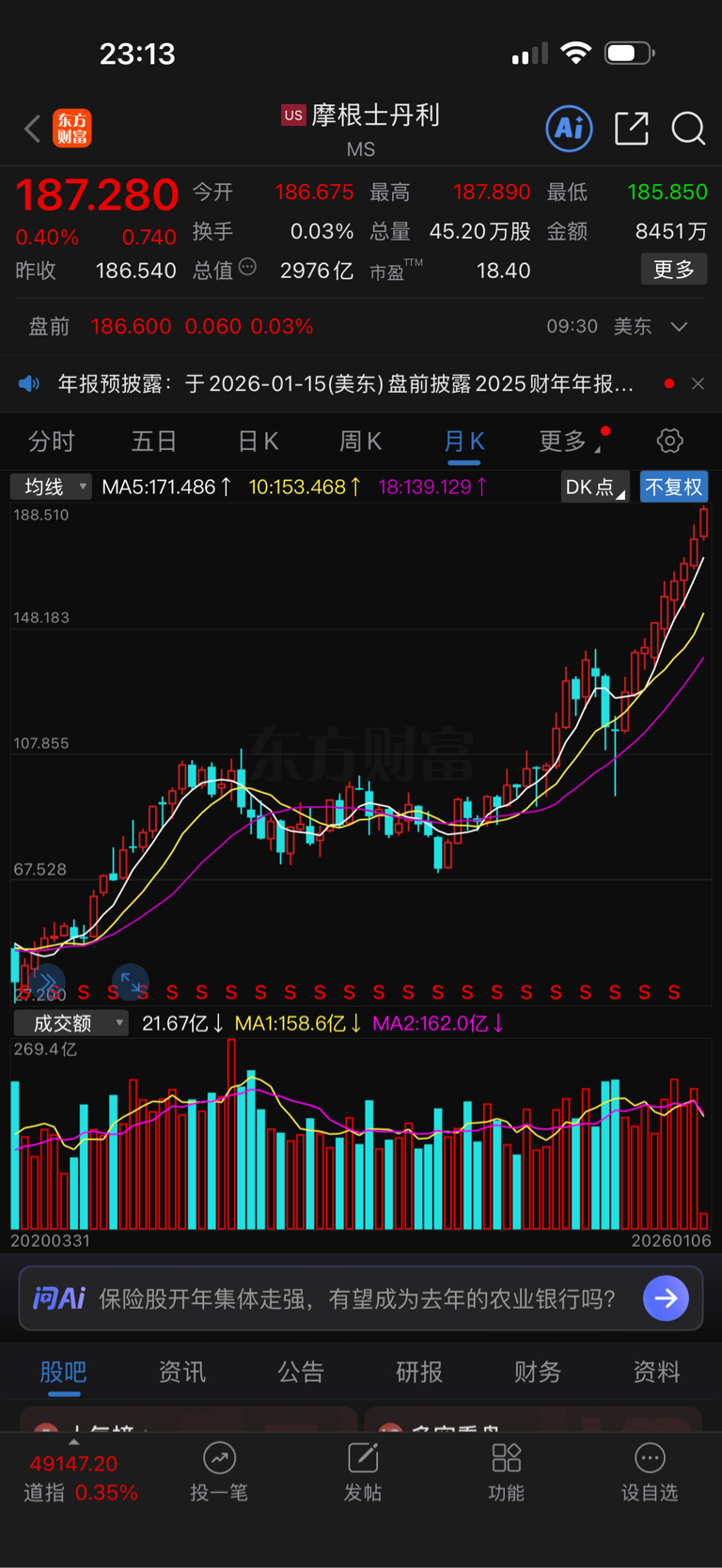$东吴证券(SH601555)$ 美股摩根士丹利连续创历史新高