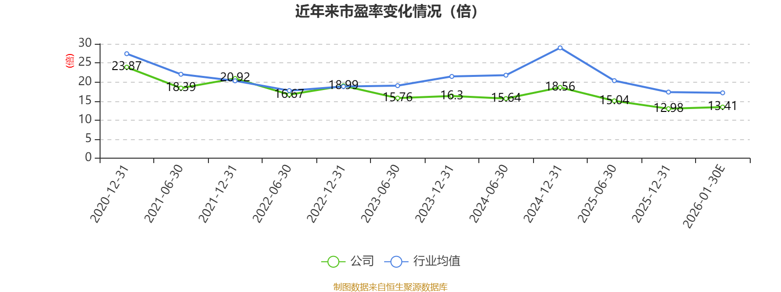 以本次披露业绩预告均值计算,公司近年市盈率(TTM)图如下所示: