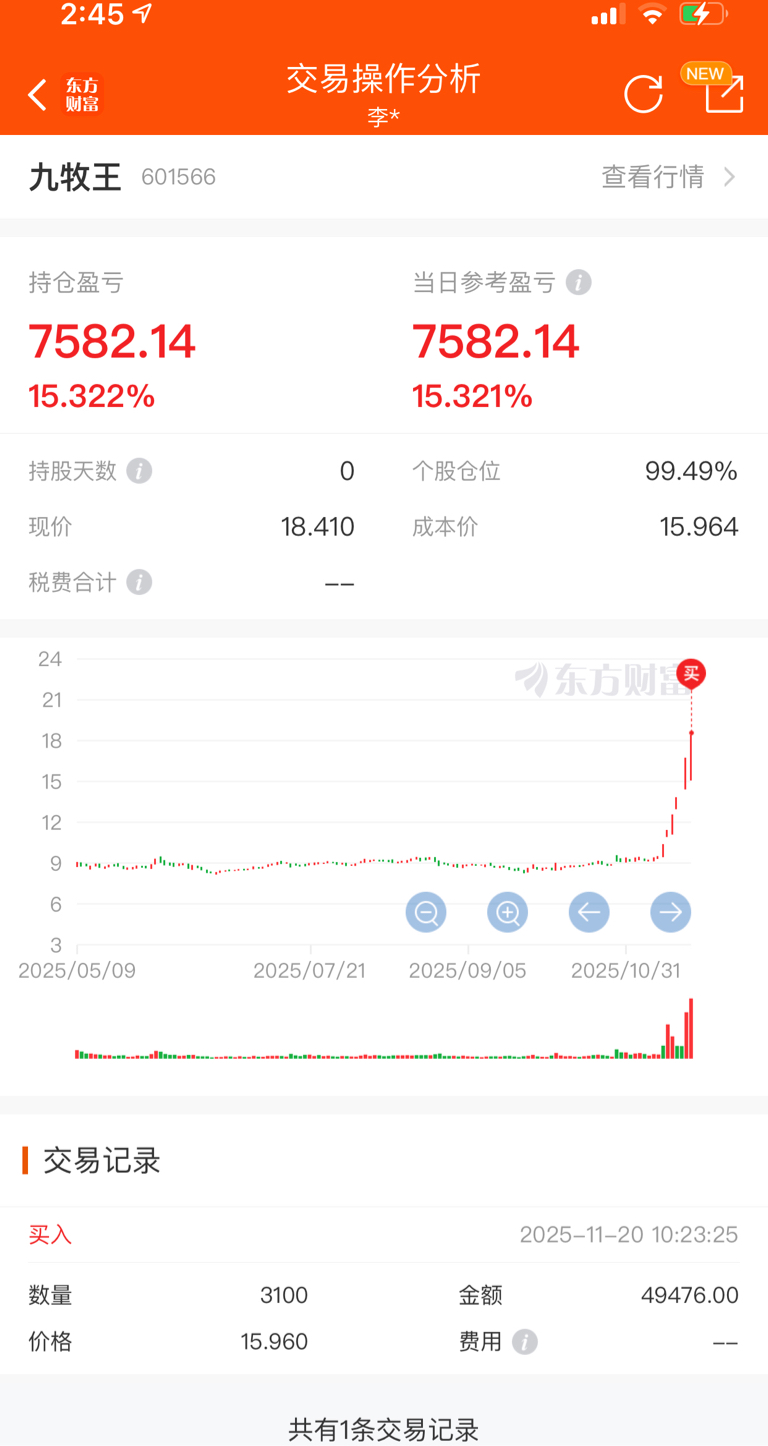 $九牧王(SH601566)$ 真的太刺激了