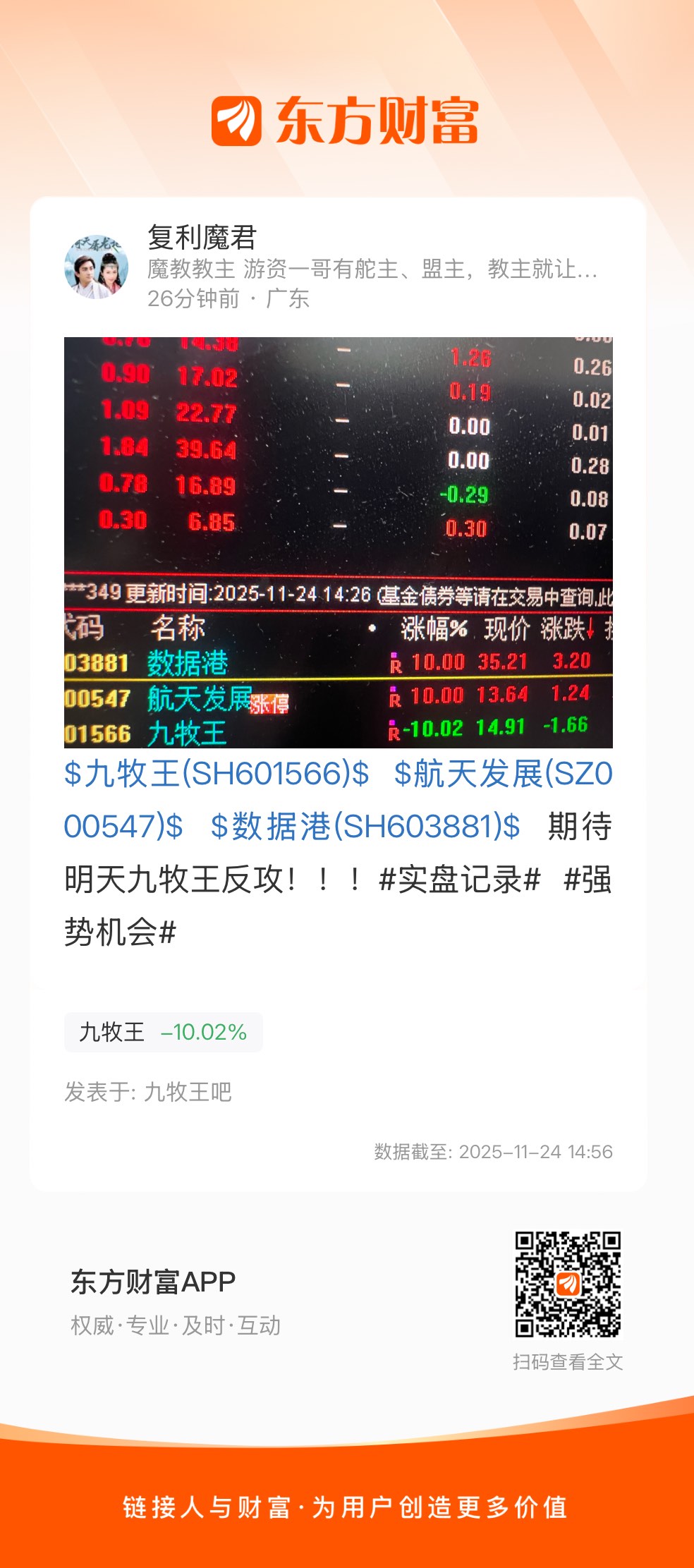 $九牧王(SH601566)$ $航天发展(SZ000547)$ $数据港(SH603881)$ 期待明天九牧王反攻!!!#实盘记录# #强势机会#