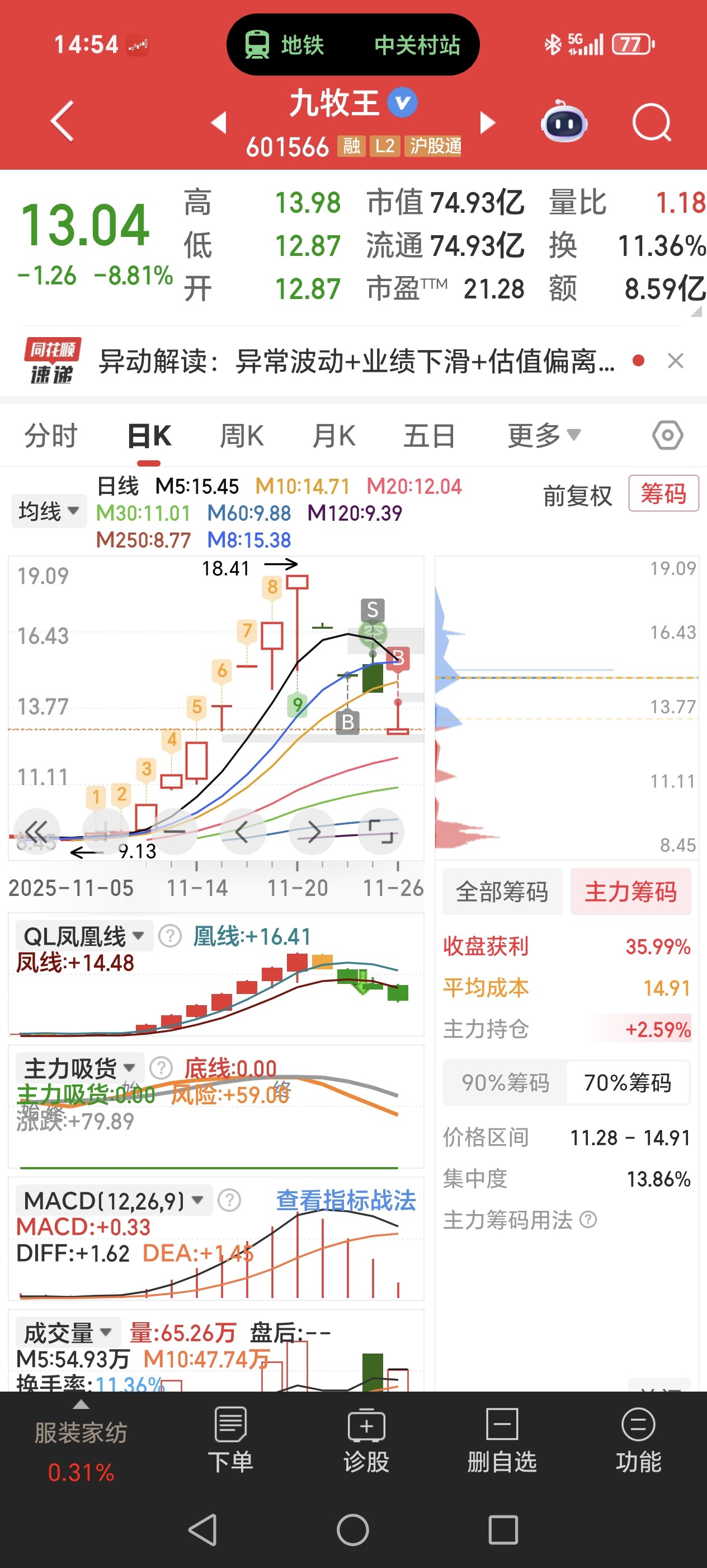 $九牧王(SH601566)$ 尾盘砸一下就考虑接回来