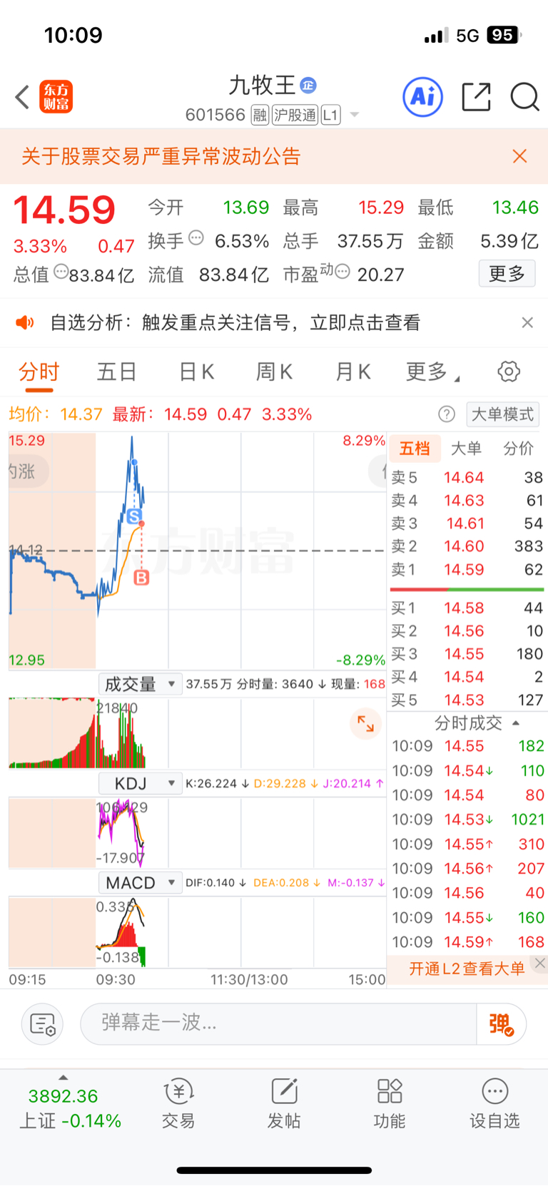 $九牧王(SH601566)$ 做T啊,那么爽,上方压力,下方均线支撑,今天冲高跑,均线接回