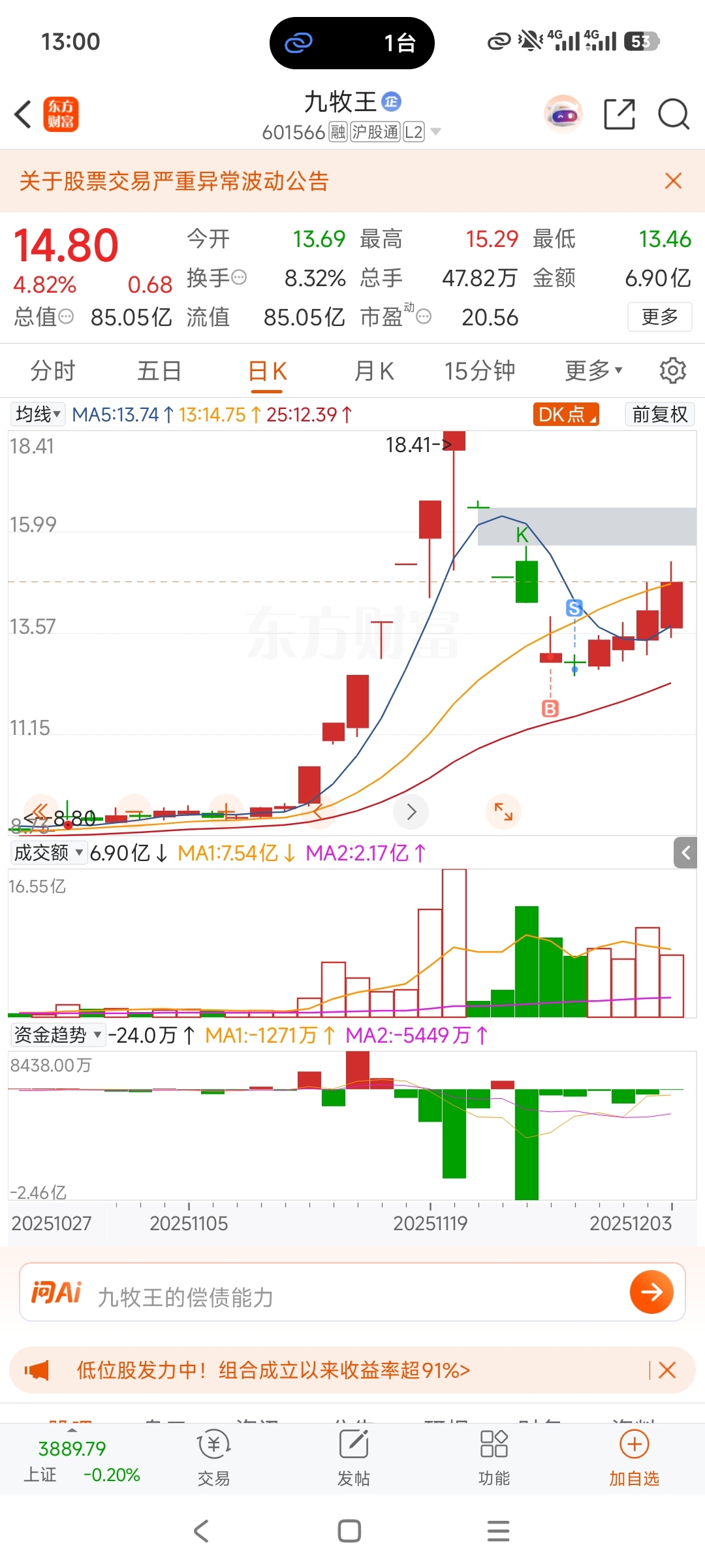 $九牧王(SH601566)$ 不让赚钱啊,亏10万,