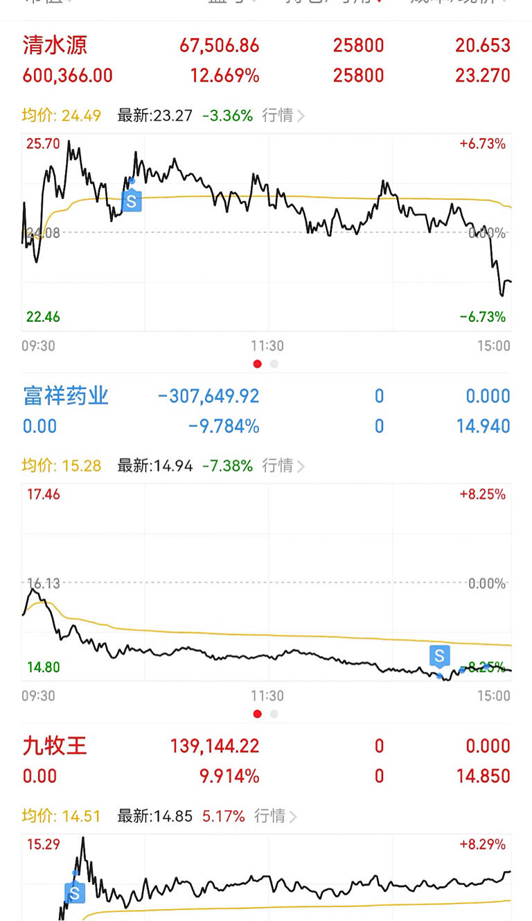 $九牧王(SH601566)$ $清水源(SZ300437)$ $富祥药业(SZ300497)$ 贴个卖点!!!盘中一直在盯紧还好处理及时!差点被爆头!