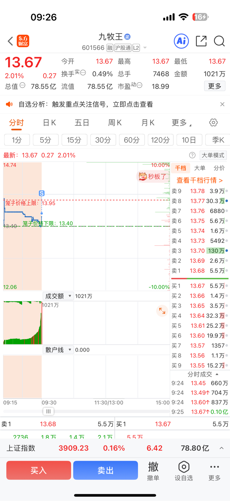 $九牧王(SH601566)$ 开盘就咋,阿姨等你