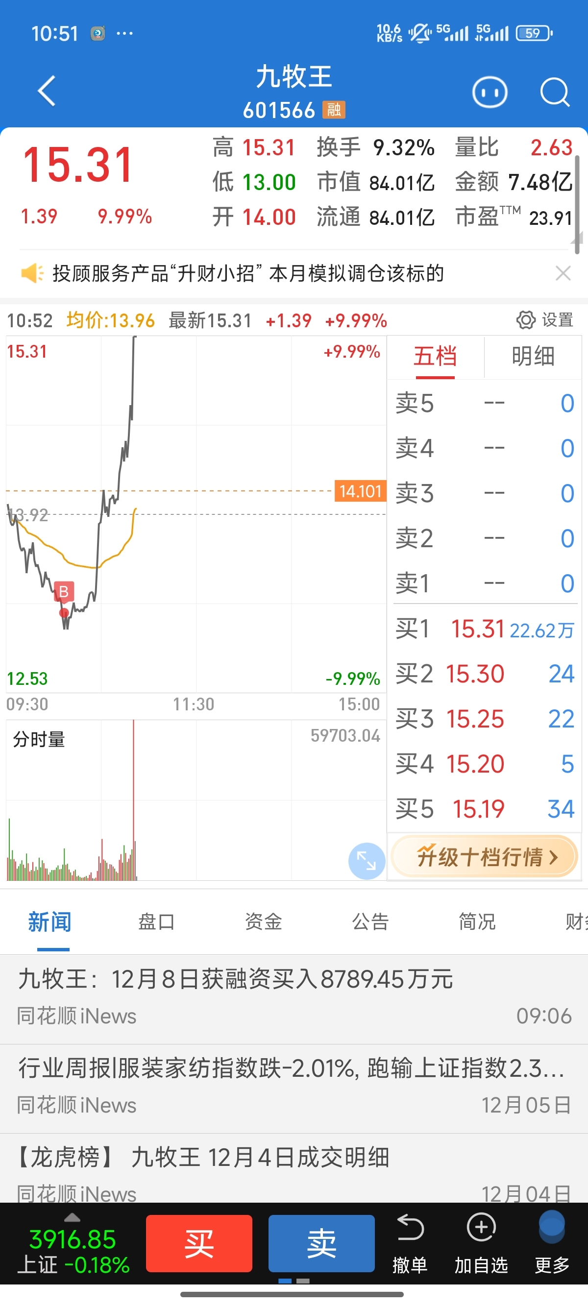 $九牧王(SH601566)$ 相信自己自觉果然是对的