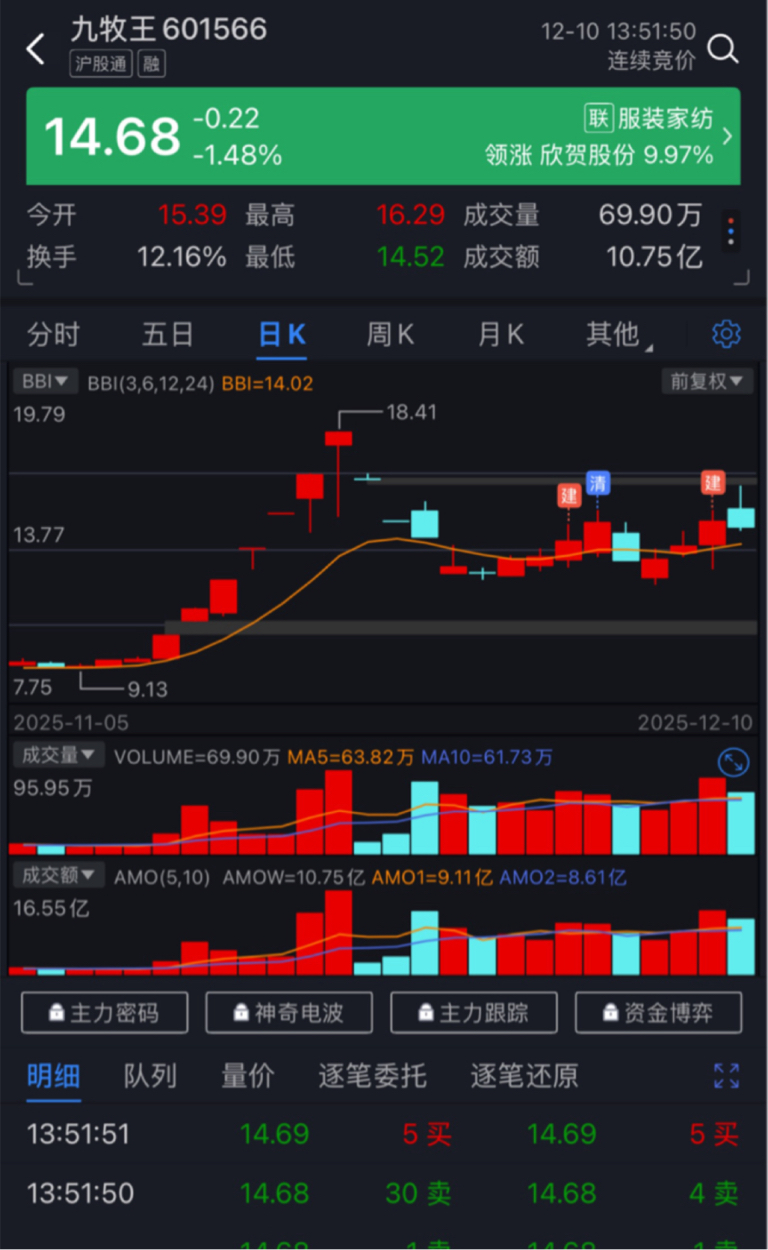 $九牧王(SH601566)$ 我就是一过客,昨天0轴附近买入,今天8个点清了