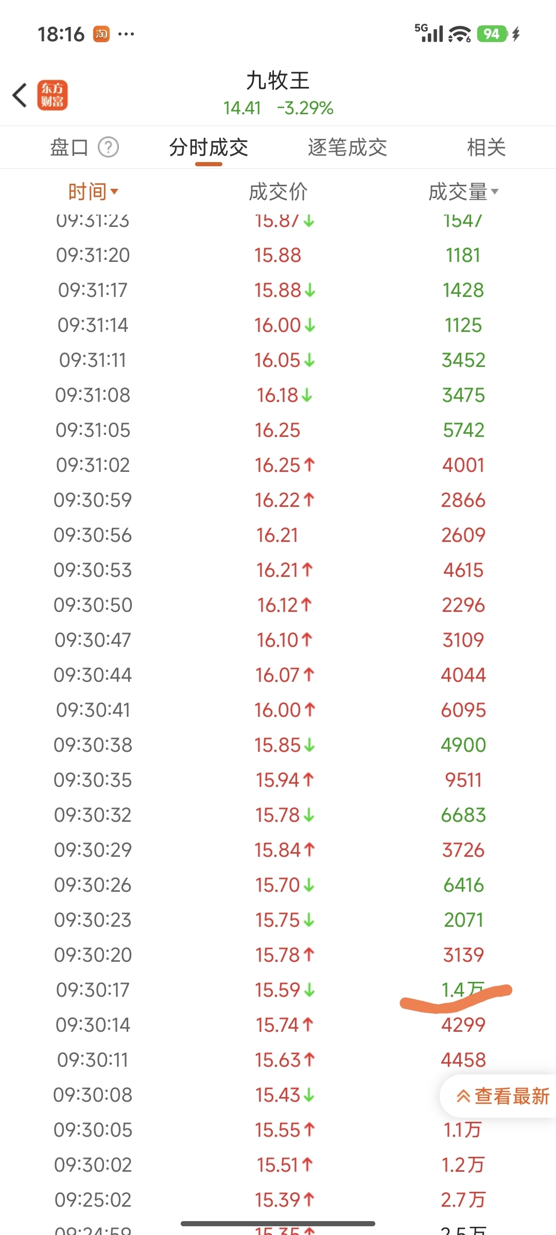 $九牧王(SH601566)$ 细看一下早上的卖出,大单子也不算多嘛