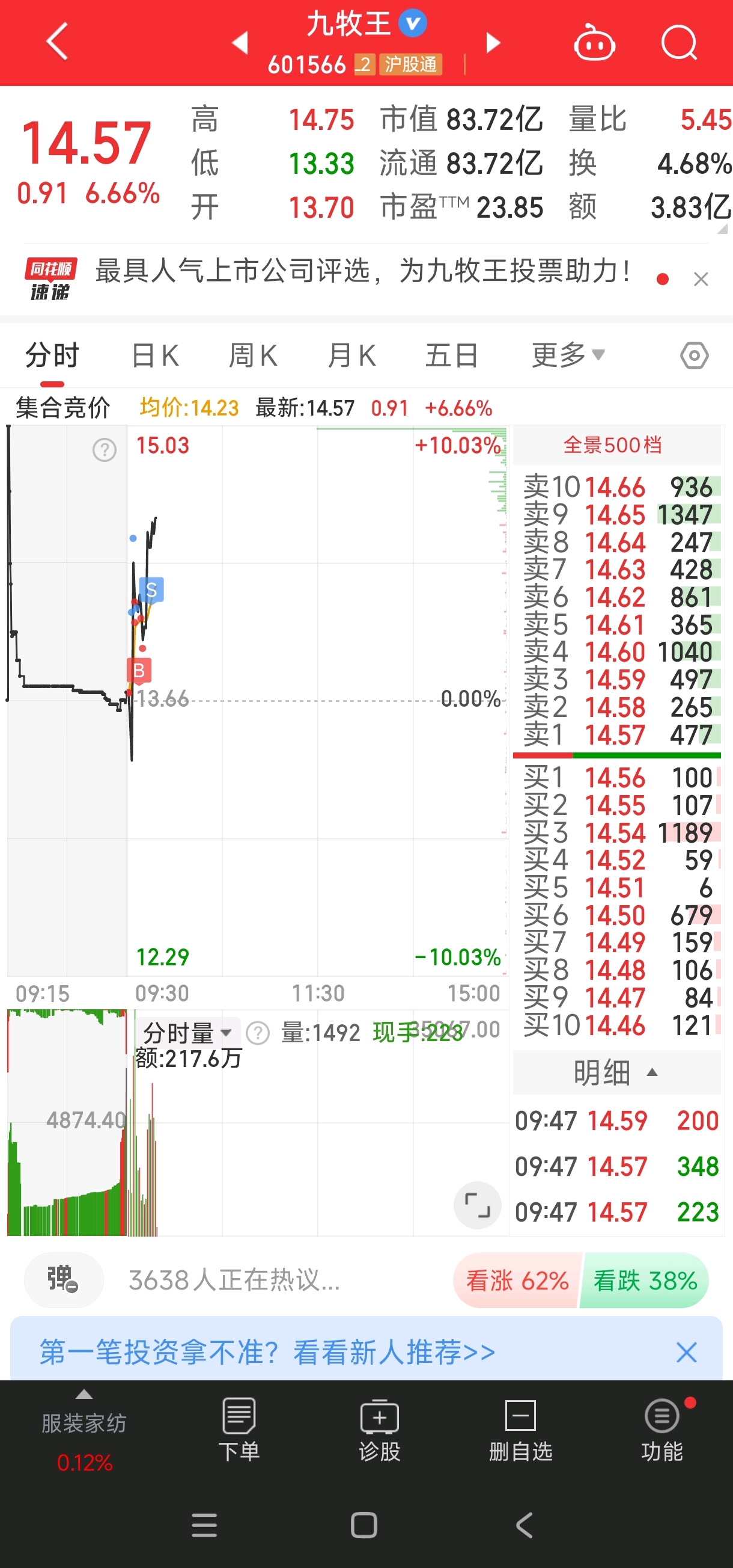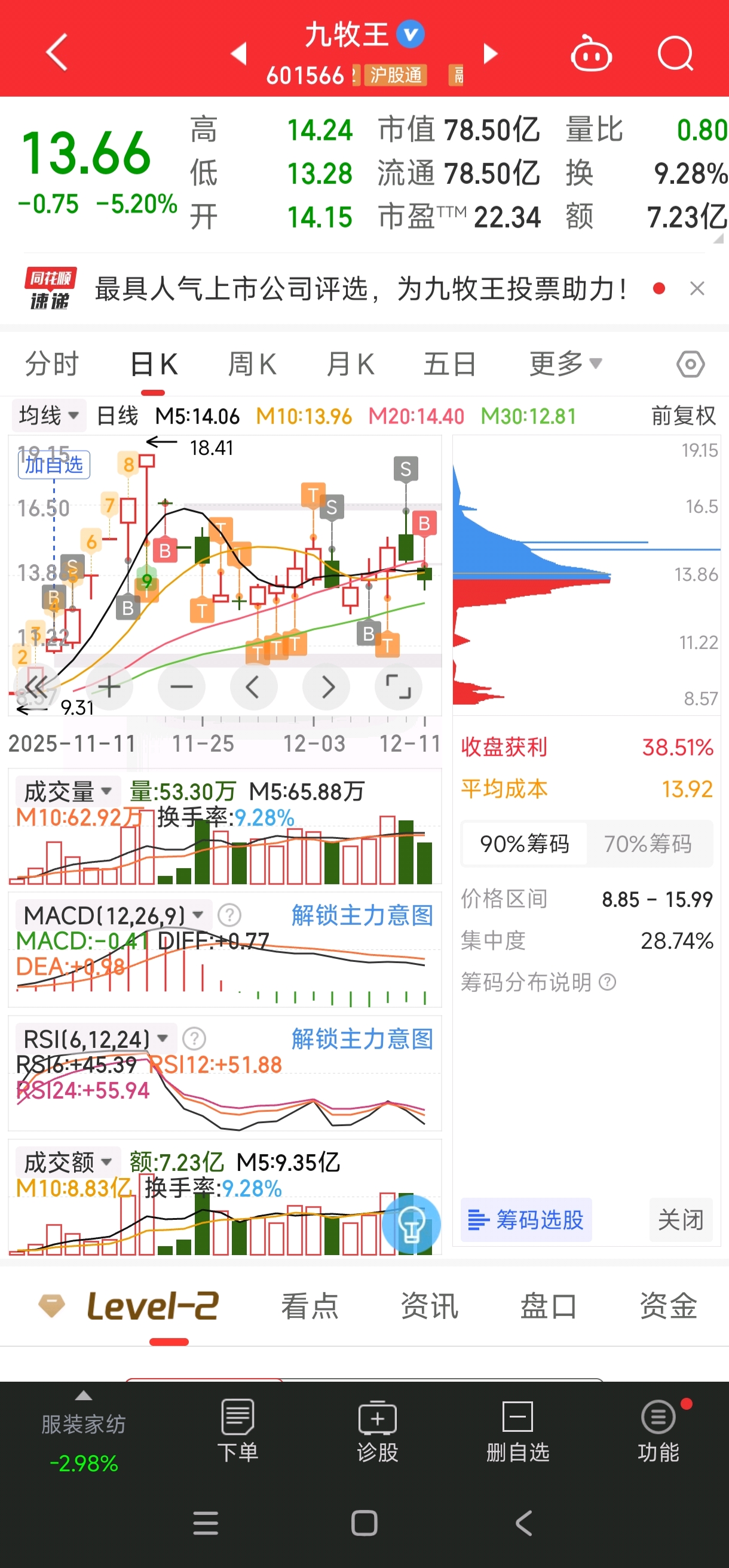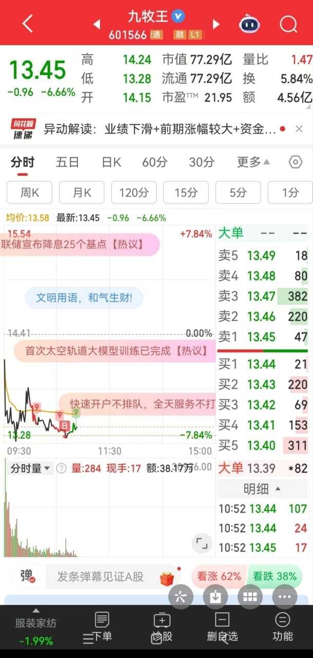 我分享我九牧王的操作,让那些埋怨造谣我的人看看。九牧王被你们称作垃圾的股,我是如何把它变废为宝,踏对节奏赚钱的。我的操作和发帖子都是同步的,认知和格局一点不比主力差