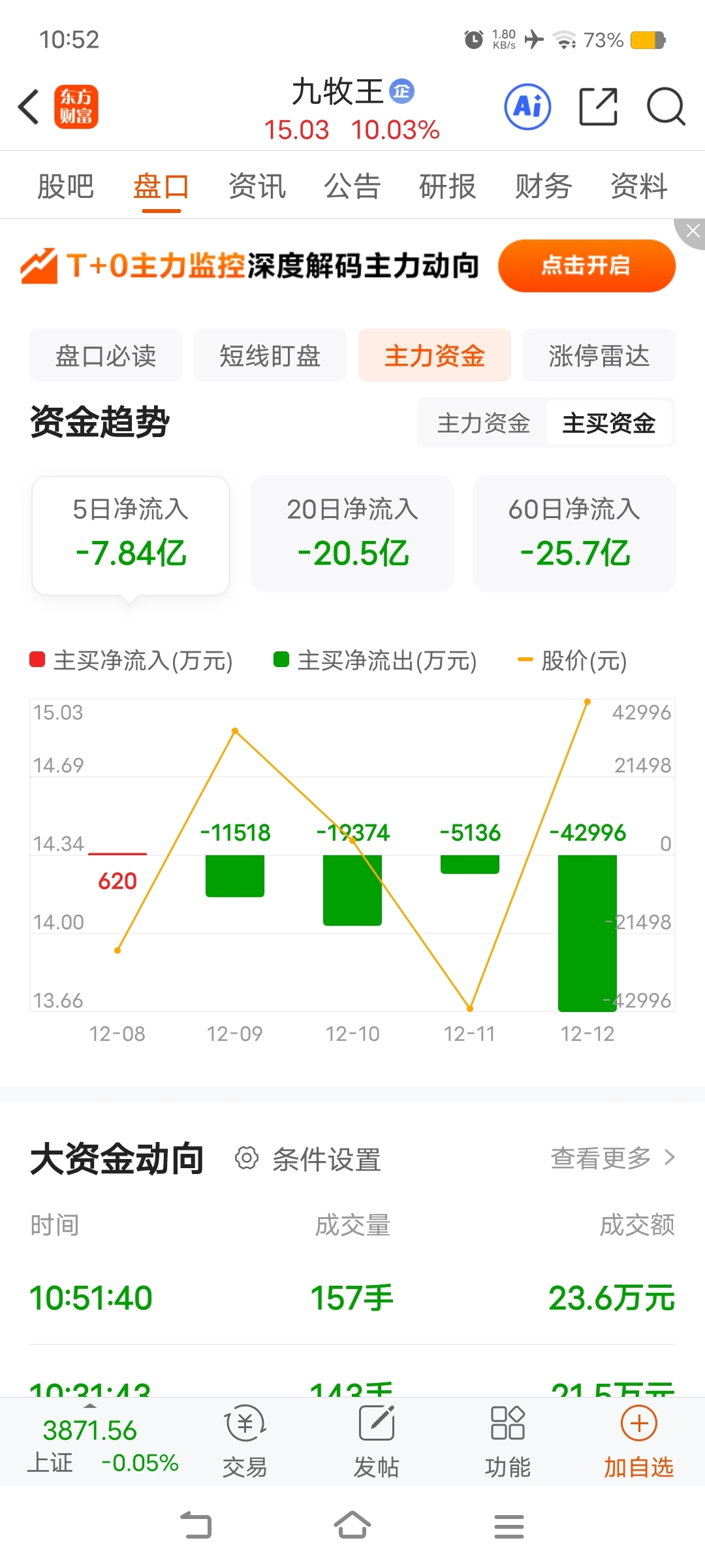 $九牧王(SH601566)$ 明显今天涨停主力在出货,大量资金卖出
