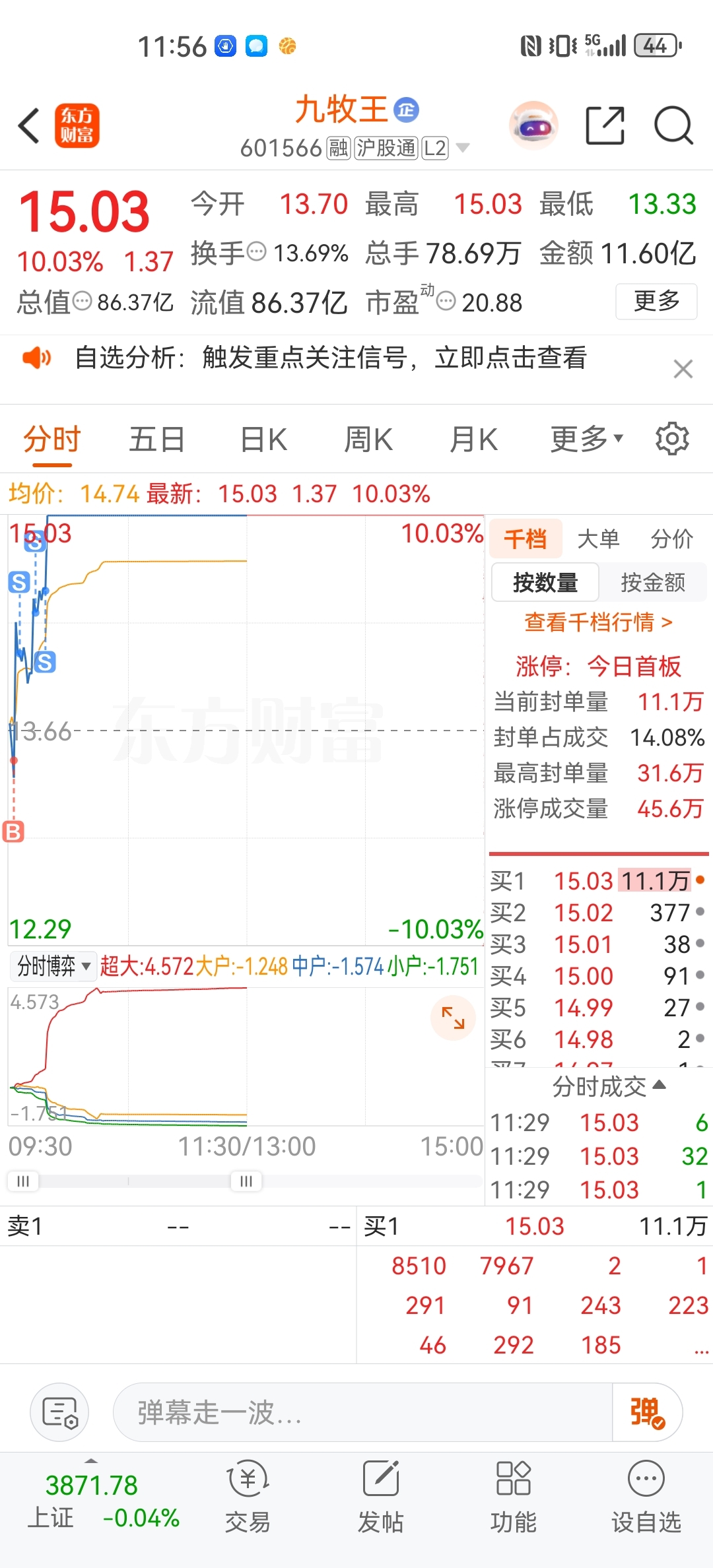 $九牧王(SH601566)$ 滚动了下仓位多赚2个点