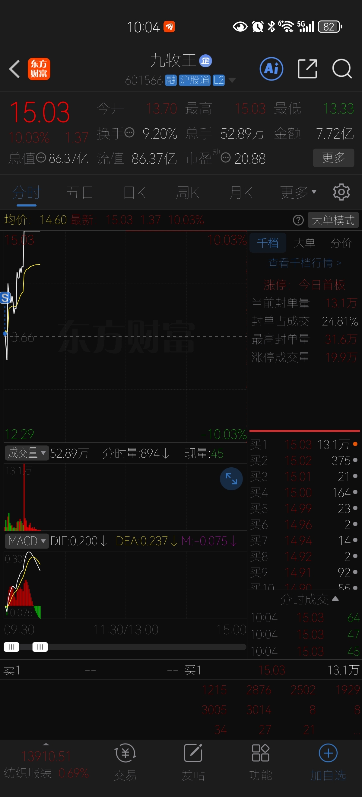 $九牧王(SH601566)$ 昨天重仓挨刀,今天割了