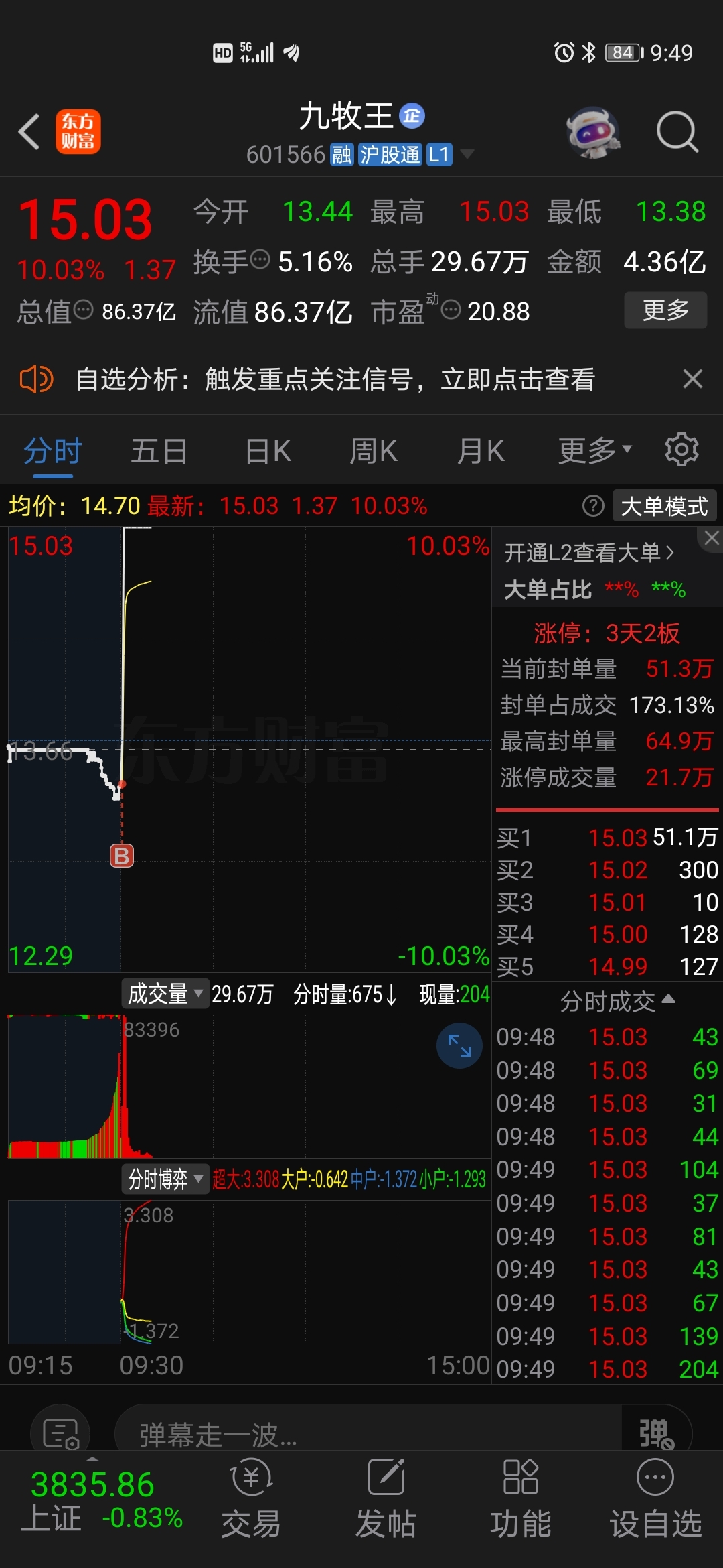 $九牧王(SH601566)$ 开盘加了点仓 解套了