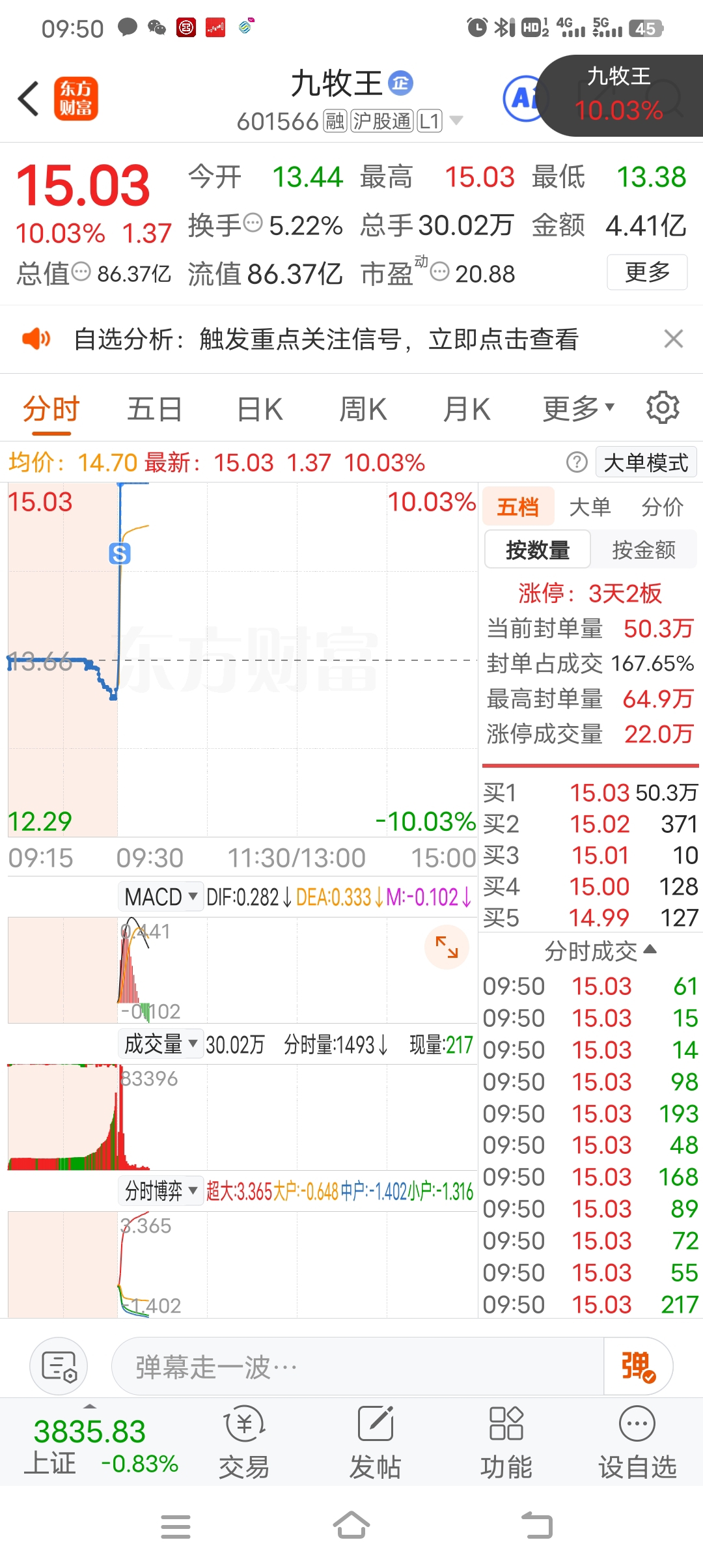 卖飞了,$九牧王(SH601566)$ 涨停以为会炸,永辉文也冲高卖了!,九牧王这个走势明天应该有弹力