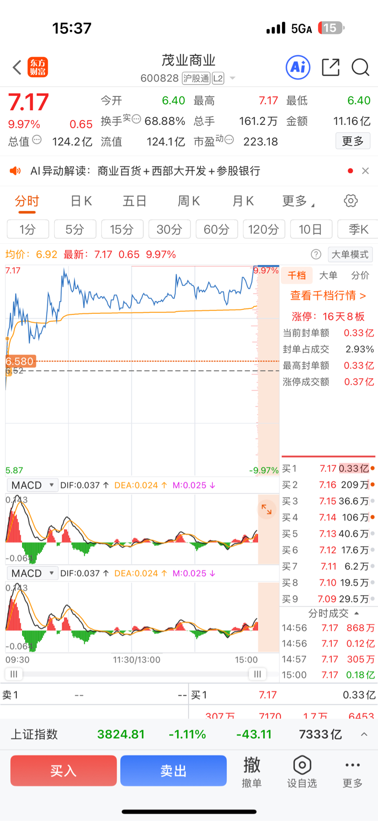 $九牧王(SH601566)$ 明天阿姨预测,九牧王厂字板。 茂业厂字板。今天阿姨继续格局九牧王