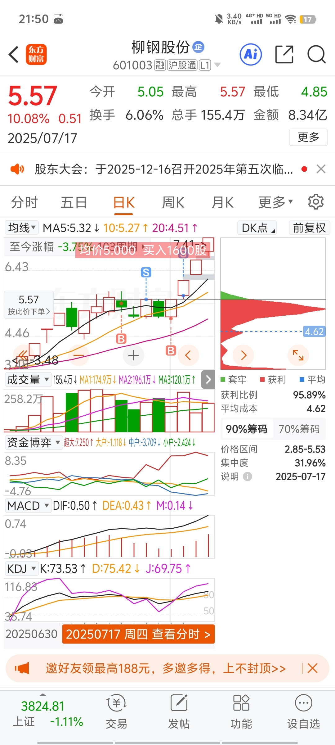 昨天五日线左右进的,别说佛山哥一家独大明天预期不行了,之前就是柳钢同样反包图形看
