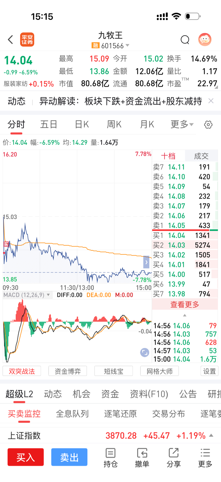 $九牧王(SH601566)$ 不明白为什么会走成这样,真的太没有格局了 不过还在趋势内 还可以继续拿着