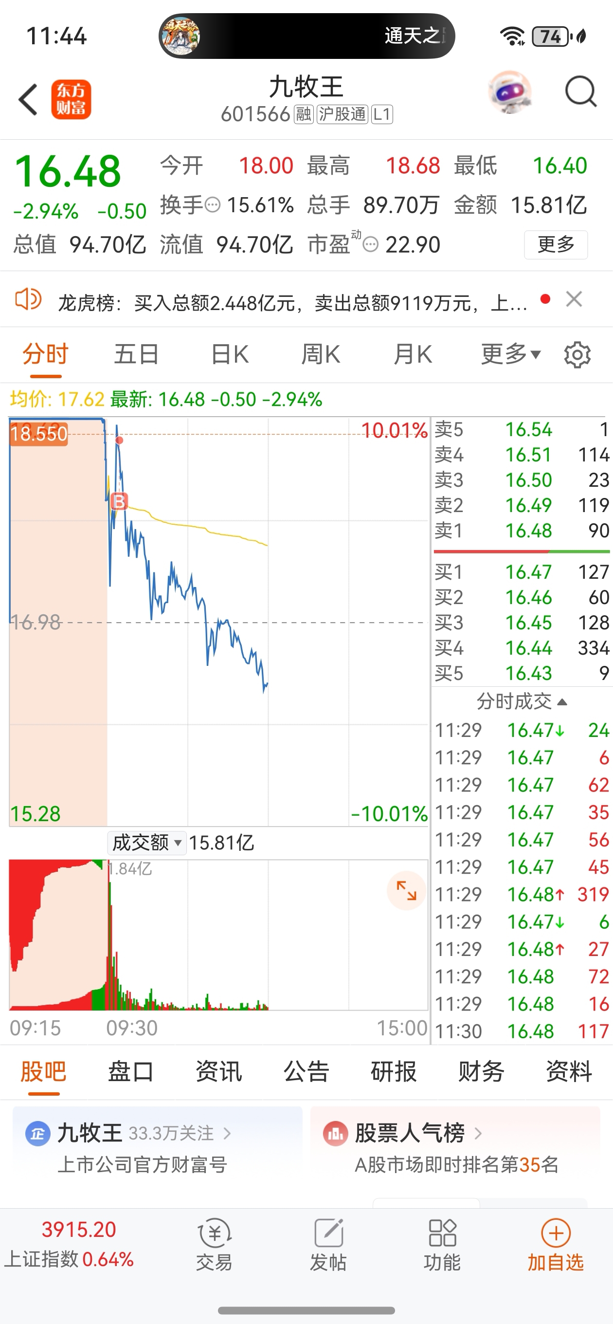 $九牧王(SH601566)$ 完蛋了!明天还有跌停吃。。
