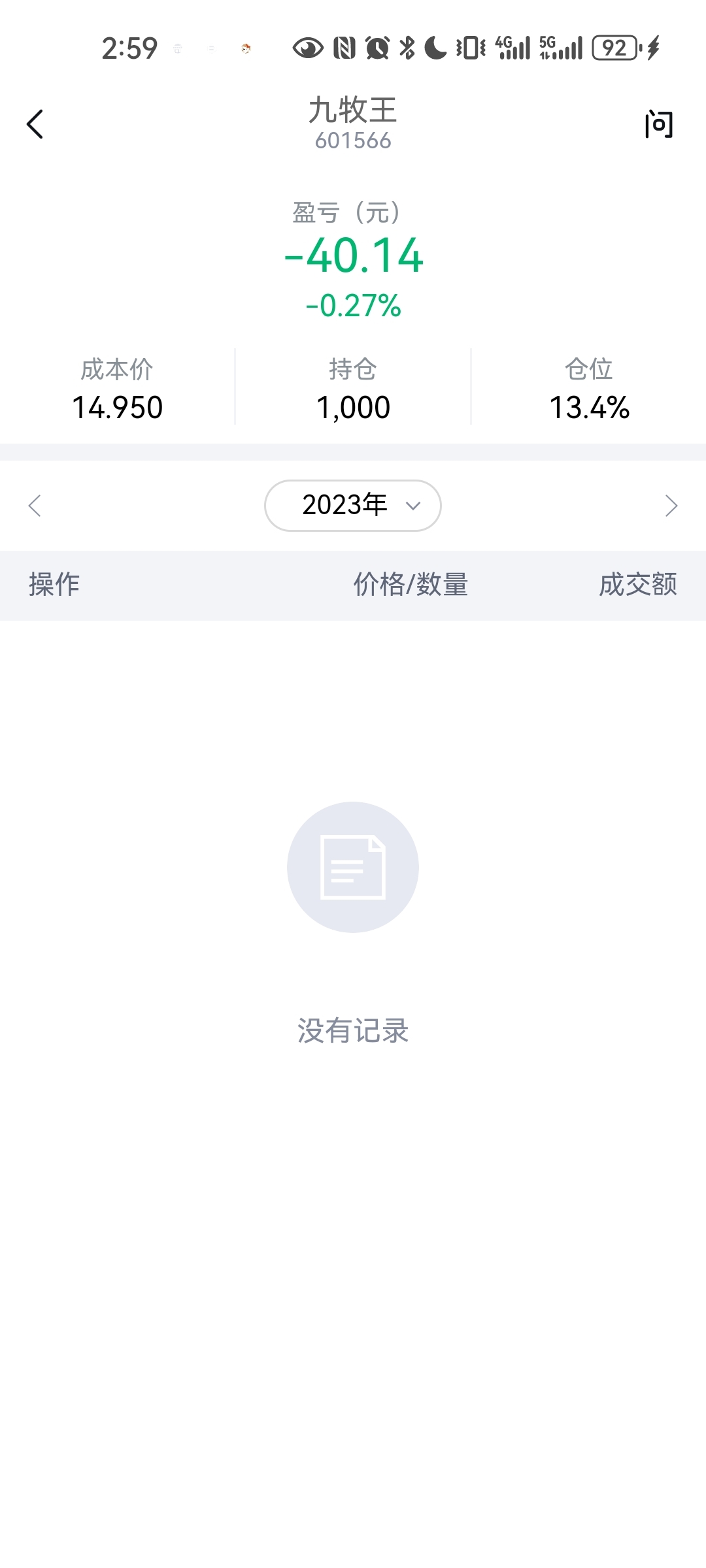 $九牧王(SH601566)$ 第一次买九牧王亏这么少,挺好的,加油