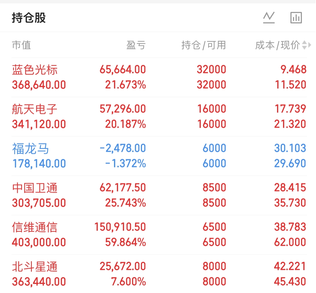 中国卫星和中国卫通都是趋势王者,这两个趋势票要来回操作,做最强的品种。不管盘中如何波动,趋势没有走坏,继续拿住!