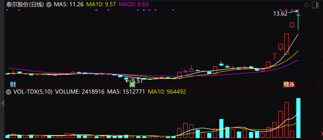 泰尔股份在工业机器人市场公司产品已覆盖包装、焊挂牌、拆带等机型,并应用于宝信等客户现场,基本面上,三季度归母净利润为 负,同比大幅下降,技术面上,上涨已经5连涨停,辨识度高。昨日继续放量,并且在5日线明显有资金做支撑,不过在遇到17.7附近的前高遭遇抛压,短期是有可能继续回落的,今日如果高开高走,就不追了,不过如果回踩5日线附近还是可以尝试介入的。