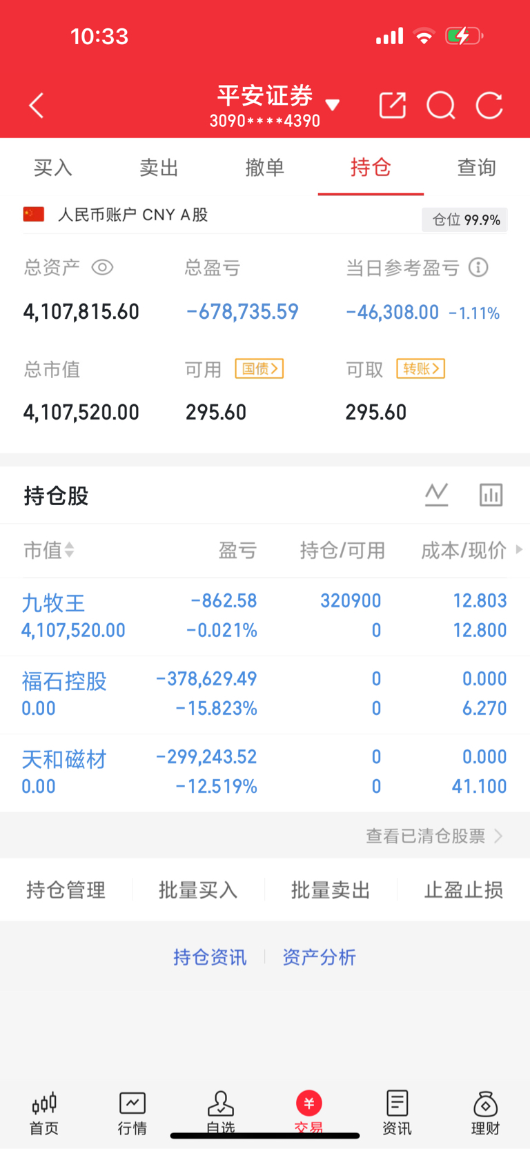 福石和天和血亏,二只割出来换票操作了:九牧王 我们一起静待花开$九牧王(SH601566)$