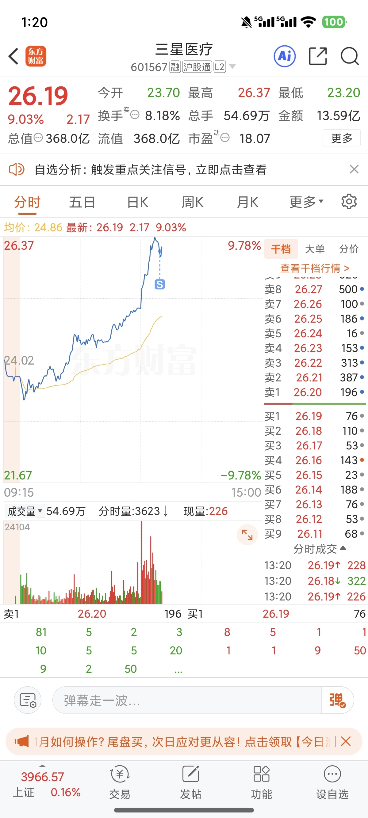 $三星医疗(SH601567)$ 今天先走,明天右侧跑出来再进