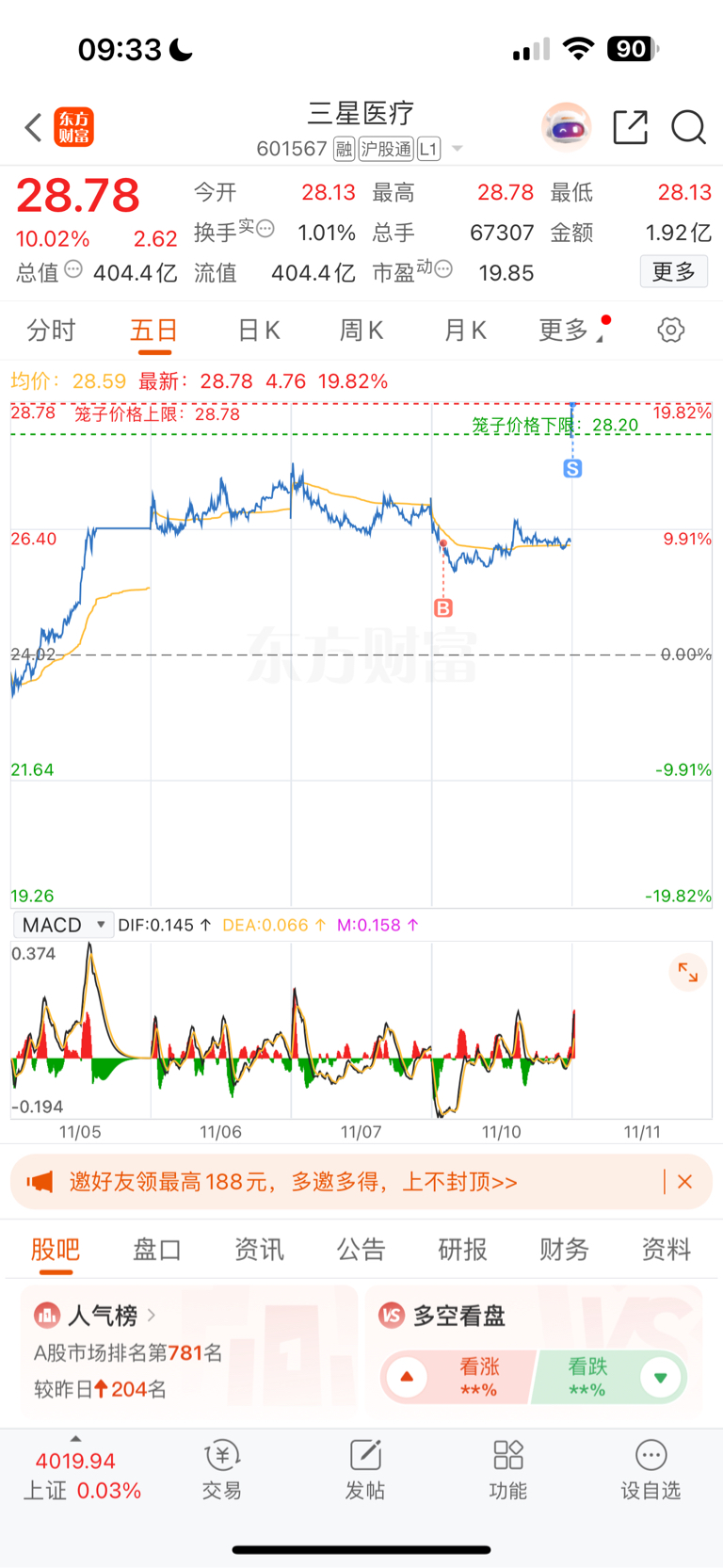 $三星医疗(SH601567)$ 兄弟们,我是发不了财了,短线思维已经占据了我的大脑,根本拿不住