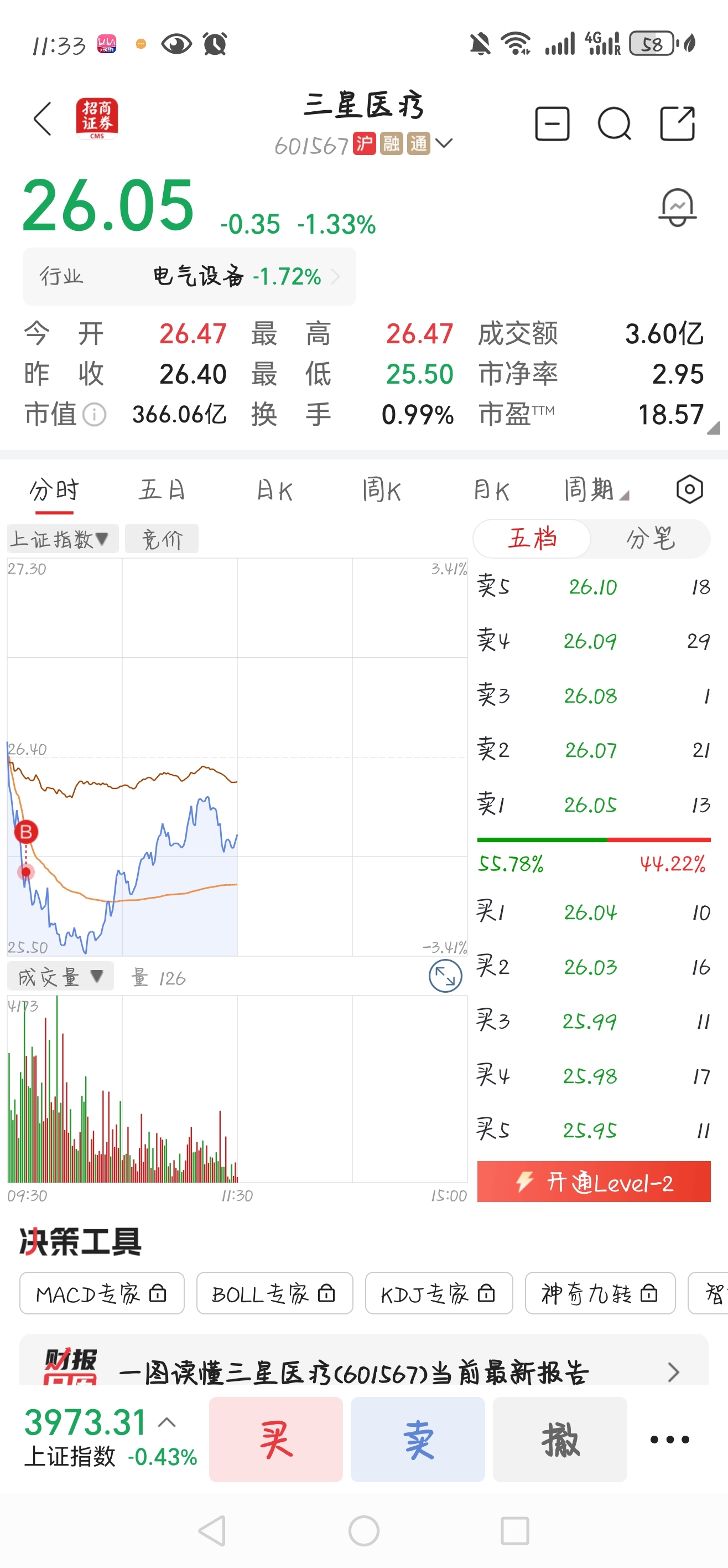 $三星医疗(SH601567)$ 抄底,等红盘卖了做t#炒股日记#