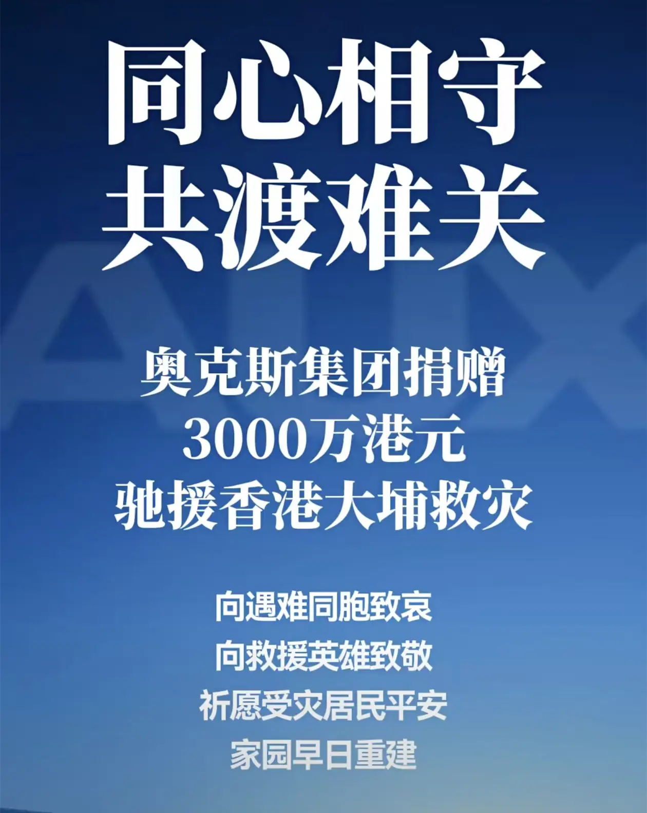 支持奥克斯!捐赠香港大埔火灾3000万港元 表示:继续关注香港火灾进展
