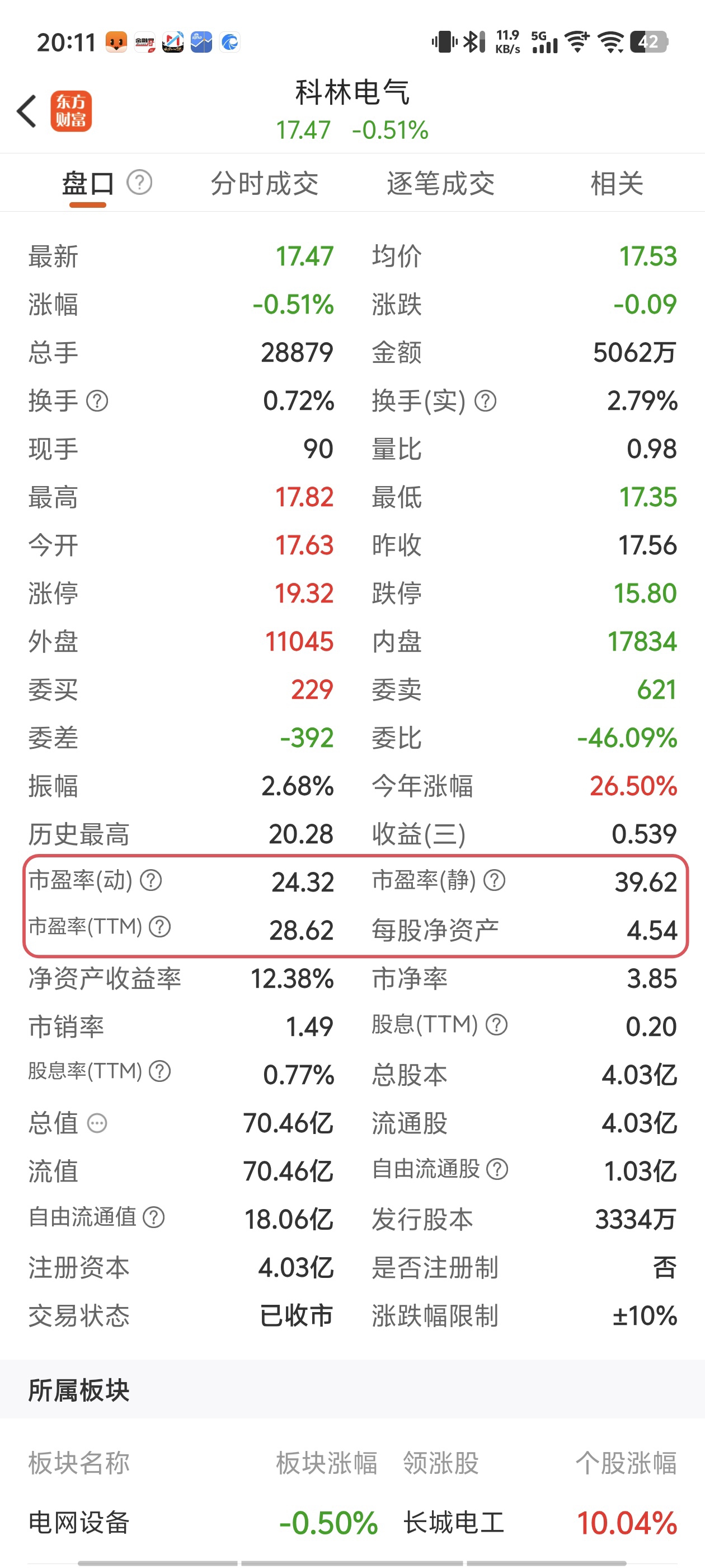 $三星医疗(SH601567)$ 科林电气的市盈率都比你高!