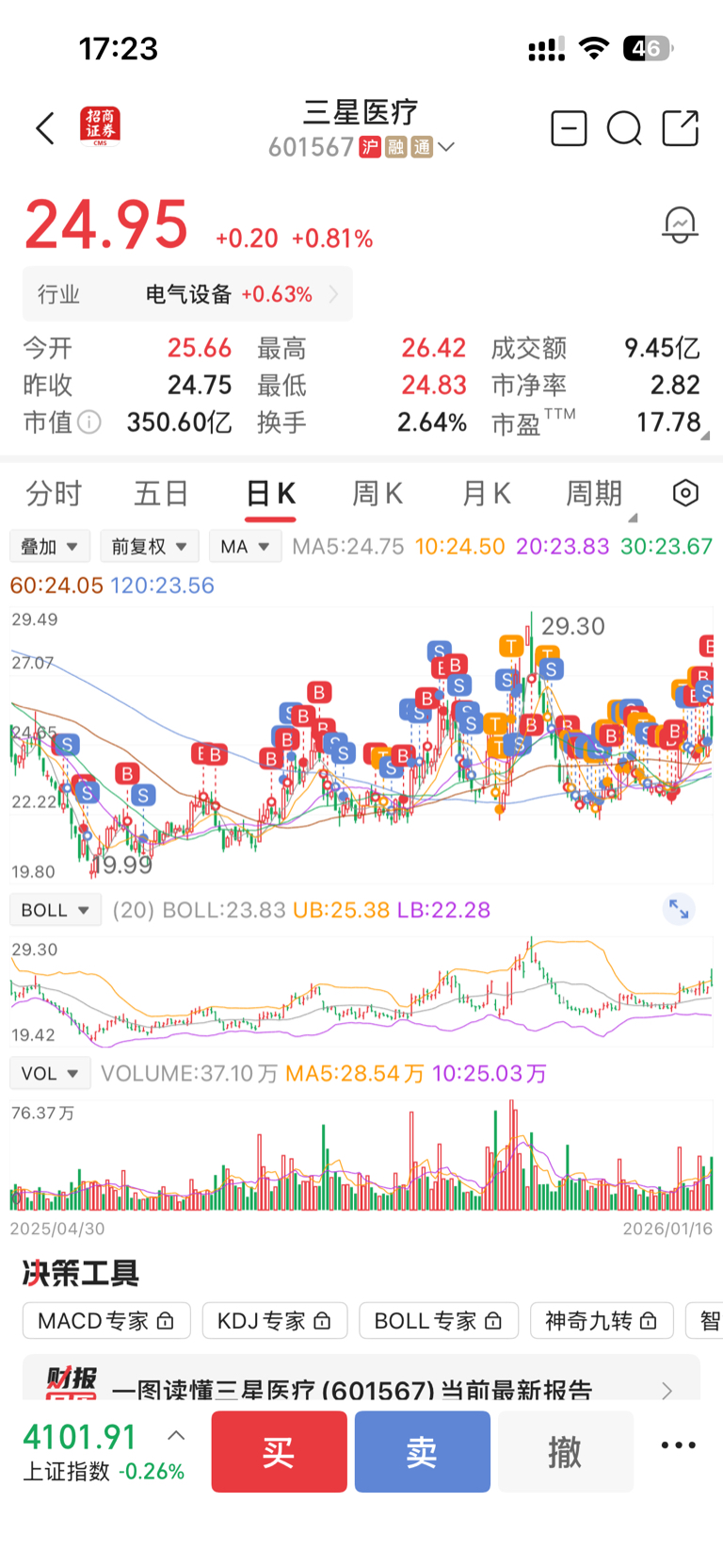 $三星医疗(SH601567)$ 半年多了 虽然在你身上赚了不少但是也错过了好多机会 今天又追高了